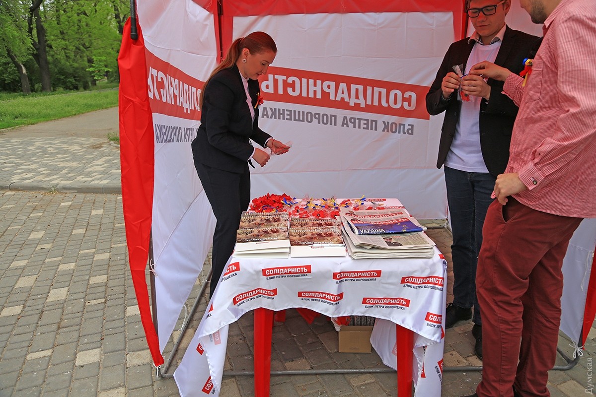 Активисты молодежного крыла партии «Солидарность» Блок Петра Порошенко в одесском парке Шевченко раздавали всем желающим значки в виде красных маков — как символ памяти о тех, кто не вернулся со Второй мировой войны. Восьмого мая 72 года назад был подписан Акт о безоговорочной капитуляции гитлеровской Германии. По всей Европе и Америке люди вспоминали погибших и проводили марши памяти. В 2012 году в Украине инициатором такого марша впервые стал Союз украинской молодежи, а с 2015-го мы отмечаем День памяти официально.