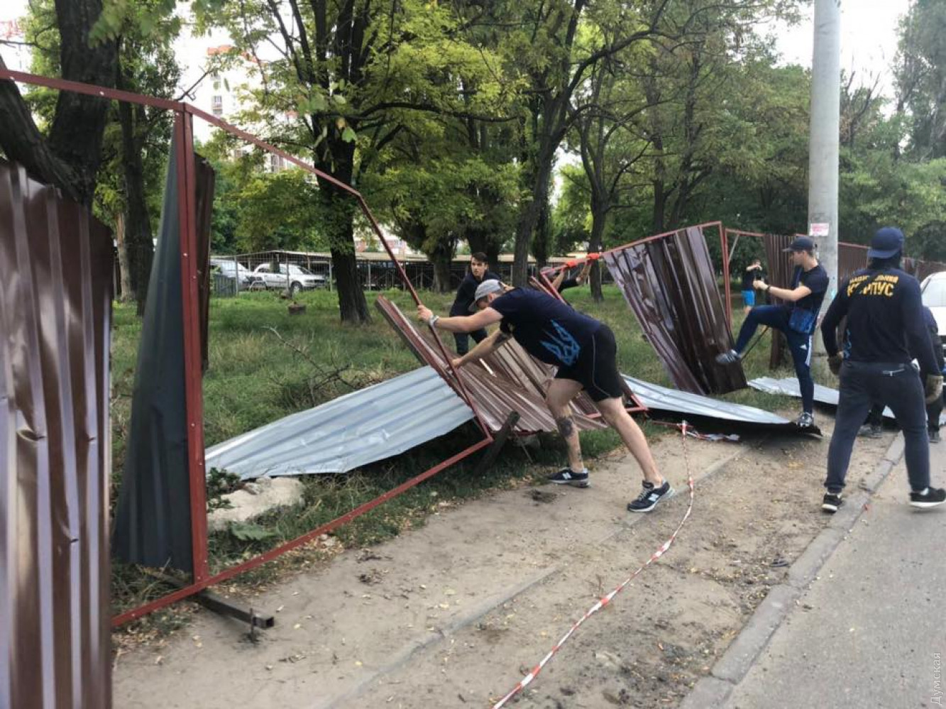 Одесские активисты вечером 28 июля демонтировали забор на проспекте Небесной сотни, за которым, по их мнению, застройщик намерен возвести МАФы. Как отмечают в группе «Национальный корпус», непорядочный бизнесмен решил, что у него есть право на застройку МАФами единственной зеленой зоны жилмассива «Радужный».