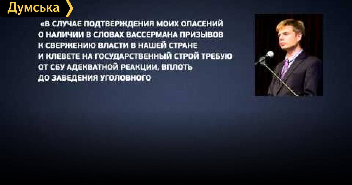 Анатолия Вассермана стоить проверить на психическое здоровье. Народный депутат Украины, замглавы фракции Блок Петра Порошенко «Солидарность» Алексей Гончаренко направил запрос в СБУ с требованием дать экспертную оценку высказываниям кремлевского пропагандиста.