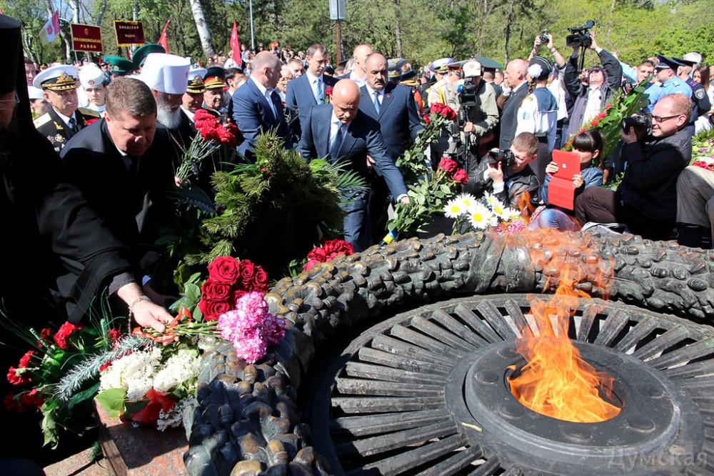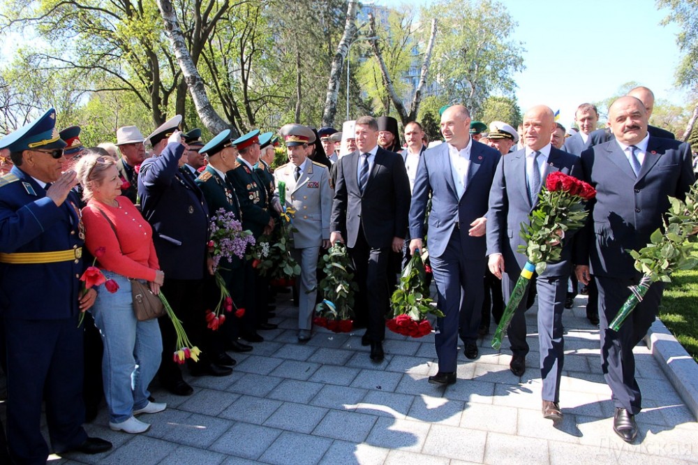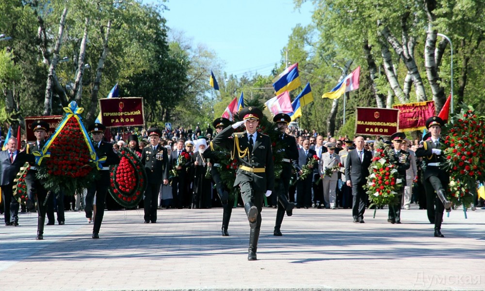 В 10:00 праздничные мероприятия прошли на Аллее Славы в парке Шевченко. Руководители города и области, шефы силовых ведомств, иностранные дипломаты, члены ветеранских организаций и тысячи одесситов возложили цветы к памятнику Неизвестному матросу и могилам участников обороны и освобождения Одессы.