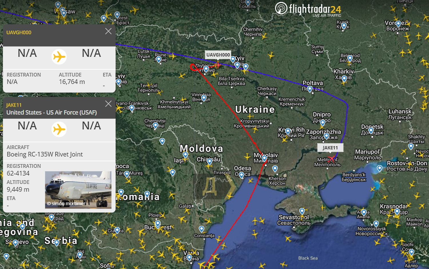 Американский беспилотный разведчик RQ-4A Global Hawk совершает полет над Украиной. Ночью он вылетел с авиабазы Al Dhafra Air Base, что в Саудовской Аравии, а в 10:30 вошел в воздушное пространство Украины в районе Очакова, передает корреспондент «Думской». Судя по данным авиатрекеров, «Глобал Хоук» проведет разведку украинско-белорусского участка границы. Кроме того, в 10:00, взлетев с британской авиабазы Mildenhall, украинскую границу в районе Луцка пересек еще один американский разведчик Boeing RC-135W Rivet Joint. Пройдя над Киевом и Полтавой, он приступил к мониторингу линии фронта и Приазовья. СМЕРТЬ РОСІЙСЬКИМ ОКУПАНТАМ! Помітили помилку? Виділяйте слова з помилкою та натискайте control-enter |