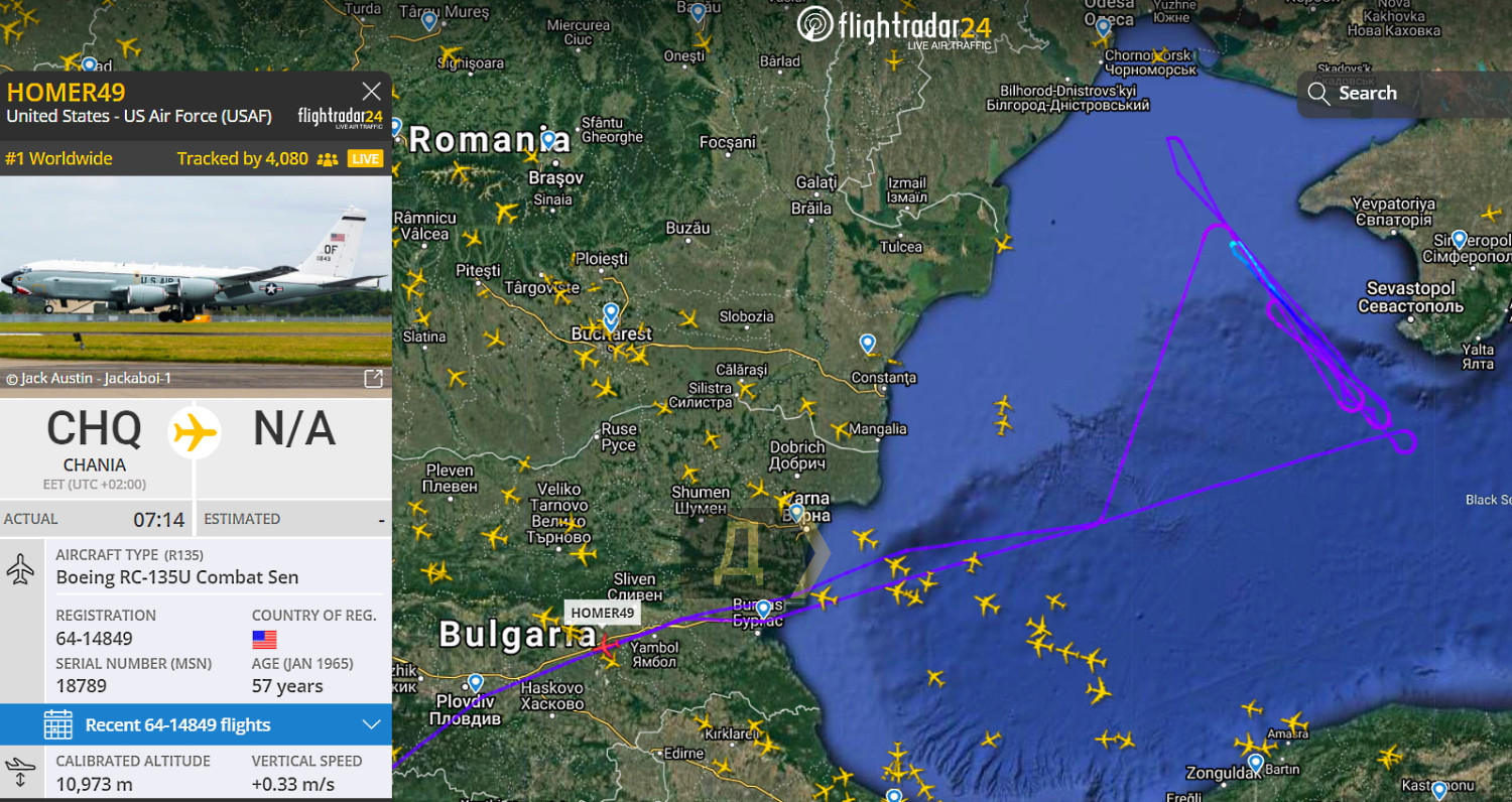 Самолеты американской разведывательной авиации следят за перемещениями кораблей страны-агрессора. Сегодня днем, взлетев с авиабазы Хания, что на острове Крит, американский стратегический разведчик Boeing RC-135U Combat Sen в 9:00 приступил к облету крымского побережья. Самолет радиотехнической разведки сделал несколько проходов на высоте 11 тысяч метров от Тендровской косы вдоль западного берега Крыма до Ялты и обратно. Примерно в 11:30 борт закончил выполнение здания и возвращается на аэродром вылета. СМЕРТЬ РОСІЙСЬКИМ ОКУПАНТАМ! Помітили помилку? Виділяйте слова з помилкою та натискайте control-enter |