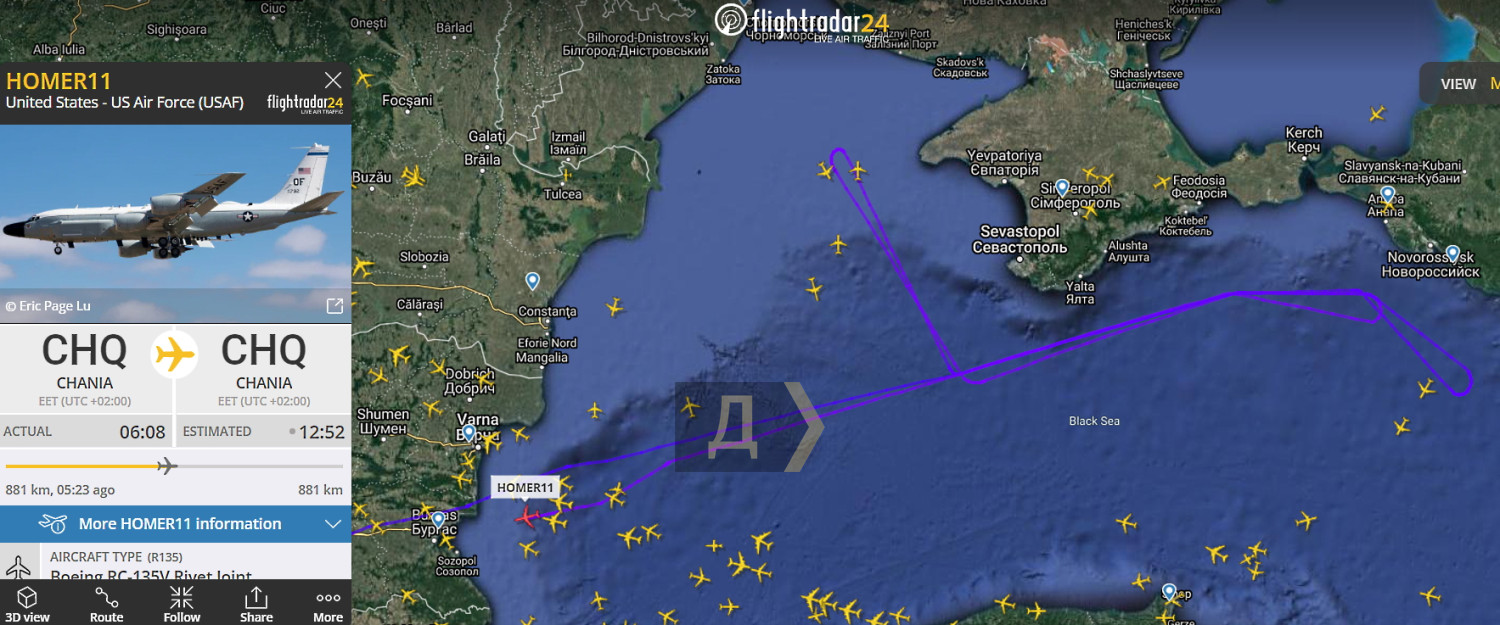 Американская воздушная разведка впервые в новом году провела мониторинг крымского побережьяСегодня американские самолеты впервые с начала 2022 года провели разведку побережья Крыма и Керченского пролива. Рано утром с авиабазы Ханья, что на греческом острове Крит, взлетел американский стратегический разведчик Boeing RC-135W Rivet Joint. Примерно в 8 часов он приступил к полетам вдоль крымского побережья — от мыса Тарханкут до Сочи. В 11:00 самолет закончил выполнение задания и ушел на аэродром вылета. Днем в центральную часть Черного моря с американской авиабазы Рамштайн, что в Германии, пришел самолет управления и целеуказания Boeing E-8C. Полет проходил на высоте 10300 метров и скорости около 700 км/час. Примерно в 18:00 борт закончил мониторинг, взяв курс на Германию. СМЕРТЬ РОСІЙСЬКИМ ОКУПАНТАМ! Помітили помилку? Виділяйте слова з помилкою та натискайте control-enter |