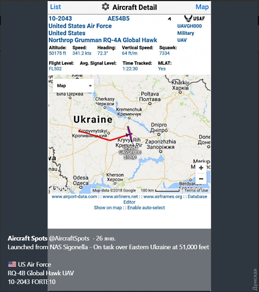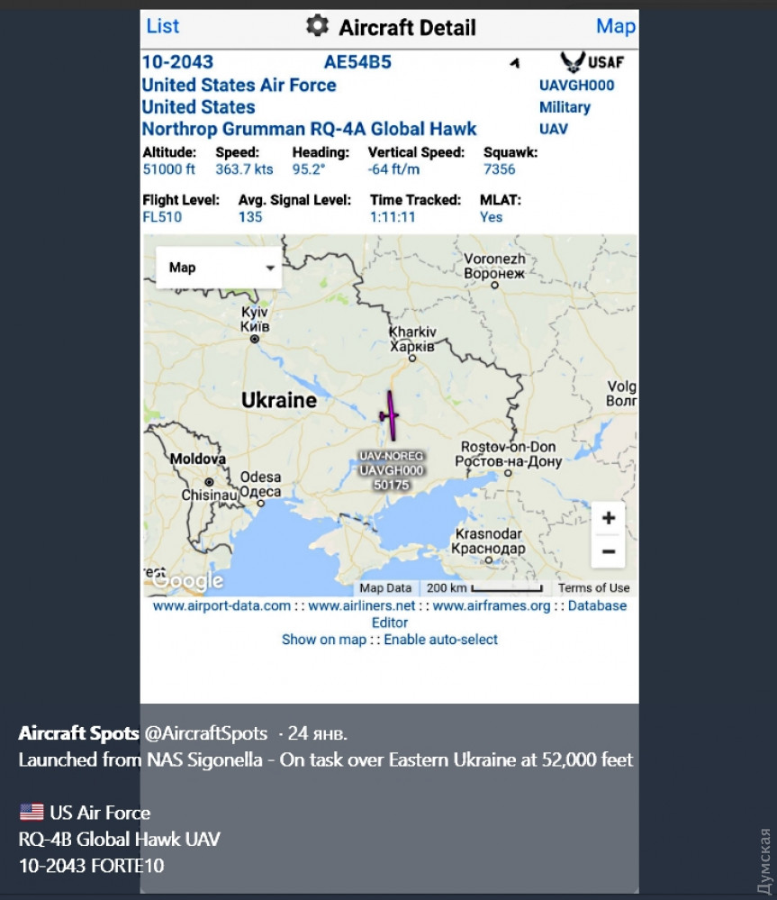 Уже пять дней американские стратегические разведчики утюжат небо, собирая разведданные об оккупированной территории Украины. Перерыв был сделан только в это воскресенье, в остальные дни - 24, 25, 26, 27 января и сегодня, 29-го, самолеты USAF находятся в небе над оккупированными территориями. В полетах принимают участие как беспилотный RQ-4B Global Hawk и пилотируемый P-8 Poseidon, так и новый для Украины борт EP-3E (глубокая модификация P-3 Orion), который, хотя и является ветераном, но оснащен достаточно серьезными системами радиомониторинга. В отдельные дни, например сегодня, в облетах участвуют сразу два борта. Напомним, полеты американских разведчиков далеко не всегда отображаются системами фиксации трафика, поэтому реальная активность может быть еще выше. СМЕРТЬ РОСІЙСЬКИМ ОКУПАНТАМ! Помітили помилку? Виділяйте слова з помилкою та натискайте control-enter |