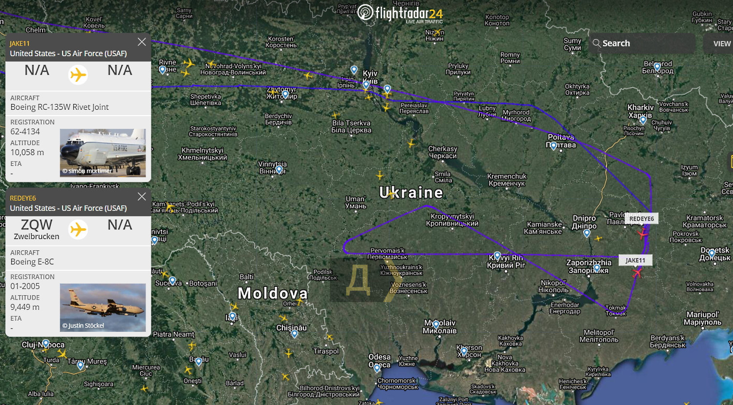 Сразу два американских стратегических разведчика мониторят ситуацию на Донбассе и в Приазовье, передает корреспондент «Думской». В 11 часов, взлетев с британской авиабазы Милденхолл, в воздушное пространство Украины вошел Boeing RC-135W Rivent Joint. Пройдя над северными областями, Киевом и Полтавой, разведчик пролетел вдоль линии фронта до Приазовья. Сделав «восьмерку» над центральными областями, «Боинг» вернулся на восток, где продолжает разведку. В 13:00, вылетев с авиабазы Рамштайн, к Донецкой области подошел самолет управления и целеуказания Boeing E-8C. В данный момент он добывает разведданные, совершая проходы вдоль линии соприскосновения. СМЕРТЬ РОСІЙСЬКИМ ОКУПАНТАМ! Помітили помилку? Виділяйте слова з помилкою та натискайте control-enter |