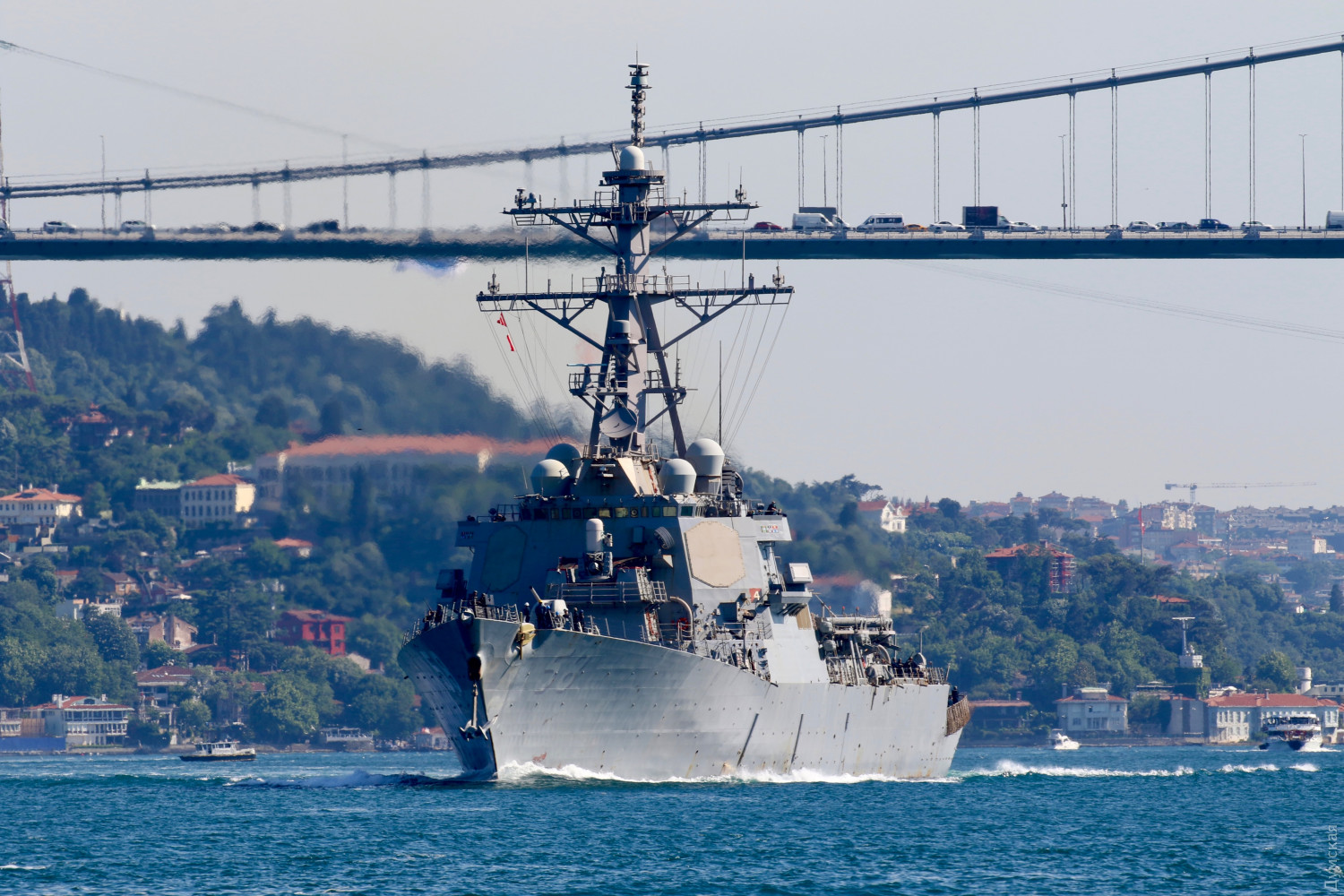 Стамбульские шипспоттеры зафиксировали проход корабля через пролив Босфор, передает корреспондент «Думской».