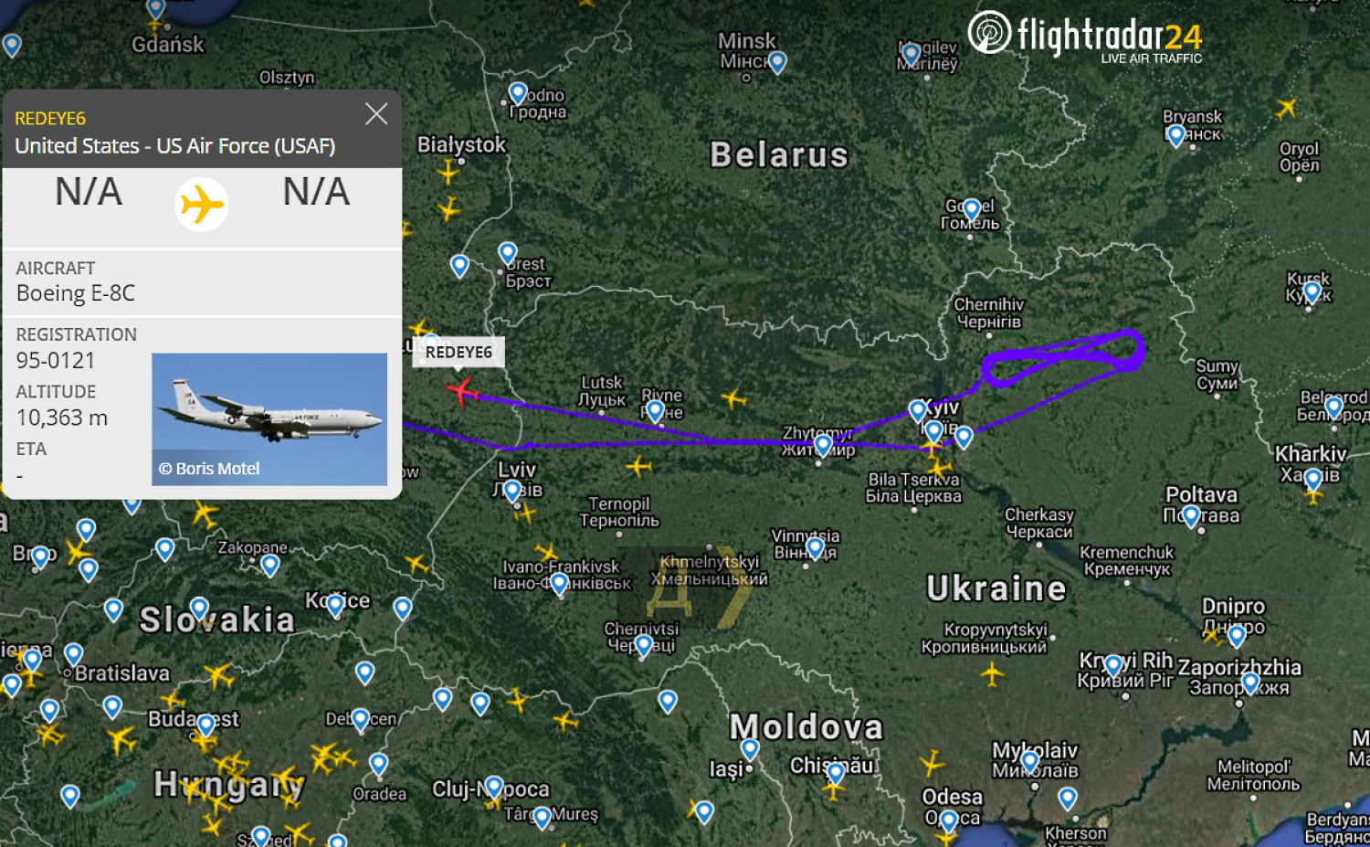 Американский самолет впервые провел ночную разведку северной границы с РоссиейАмериканский самолет боевого управления и целеуказания Boeing E-8C впервые провел ночной мониторинг сил и средств противника, сосредоточенных у северной границы Украины. Вчера вечером, взлетев с авиабазы Раммштайн, что в Германии, и дозаправившись над территорией Польши, в 23 часа он вошел в воздушное пространство Украины. Патрулирование северной границы продолжалось в течение пяти часов, примерно в 6 утра самолет закончил выполнение задания, а еще через час покинул воздушное пространство нашей страны. СМЕРТЬ РОССИЙСКИМ ОККУПАНТАМ! Заметили ошибку? Выделяйте слова с ошибкой и нажимайте control-enter |