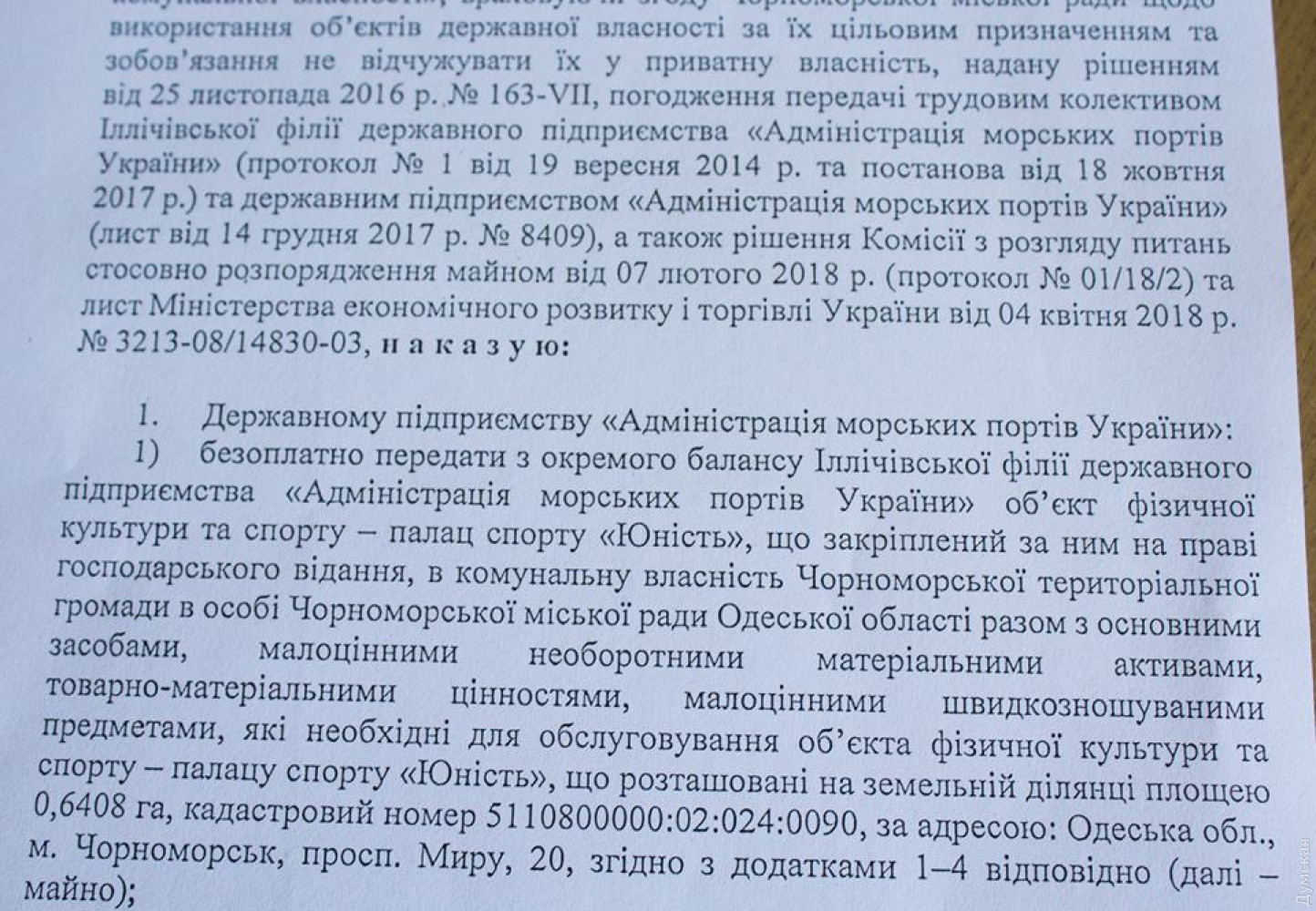 Портовики избавляются от непрофильных активов: Черноморск получит Дворец спортаДворец спорта «Юность», принадлежащий Черноморскому морскому торговому порту, передадут громаде Черноморска. Такой приказ подписал министр инфраструктуры Владимир Омелян. Как сообщили в мэрии города, процесс передачи спортивного объекта может начаться уже в декабре нынешнего года. Идея передачи Дворца спорта на баланс города возникла еще в 2013 году. Долгое время принятие решения откладывалось, а «Юность» продолжала оставаться в подвешенном состоянии. При этом многие черноморцы выступают против передачи спорткомплекса в коммунальную собственность. По их мнению, это негативно отразится на работе спортивных секций и кружков. Кроме того, некоторые опасаются, что «Юность» постигнет та же судьба, что и кинотеатр «Нептун», который много лет стоит заброшенный. В мэрии, однако, уверяют, что Дворец спорта ждет реконструкция. Также Администрация морпортов намерена передать Черноморску детский оздоровительный комплекс «Альбатрос». СМЕРТЬ РОСІЙСЬКИМ ОКУПАНТАМ! Помітили помилку? Виділяйте слова з помилкою та натискайте control-enter |