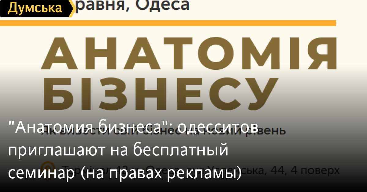 «Анатомия бизнеса»: одесситов приглашают на бесплатный семинар (на правах рекламы)31 мая в Одессе пройдет бизнес-семинар «Анатомия бизнеса: Как вывести свой бизнес на новый уровень». На форуме выступят 10 спикеров-практиков от известных компаний «Море Пива» и HopHey, «Цитрус», White Sales, Netpeak Digital Agency, SendPulse, Амфибия Студио и «Битрикс24».