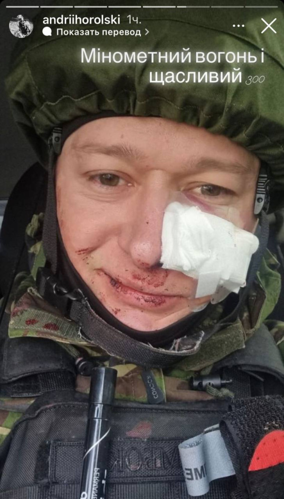 Фронтмен группы «Бумбокс» Андрей Хлывнюк, который уже около месяца защищает Киев с оружием в руках, получил ранение во время минометного обстрела. Об этом он сообщил в Instаgram, где разместил фото, на которых ему оказывают первую помощь. «К сожалению наша колонна потеряла два пикапа, но верю, что наши волонтеры с этим справятся», — написал музыкант. Андрей Хлывнюк — в территориальной обороне Киева с первых дней полномасштабного вторжения рф. Народная песня «Ой у лузі червона калина» в его исполнении стала одним из символов сопротивления украинцев российским нацистам. СМЕРТЬ РОСІЙСЬКИМ ОКУПАНТАМ! Помітили помилку? Виділяйте слова з помилкою та натискайте control-enter |