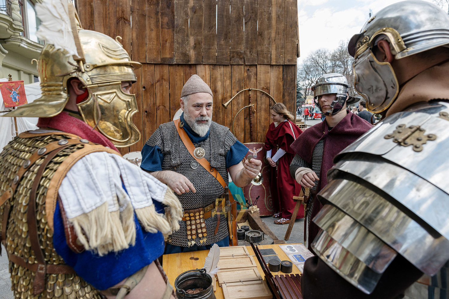 Римские легионеры разбили лагерь в самом центре Одессы, на Дерибасовской улице. Уже завтра здесь пройдет масштабная Пасхальная реконструкция, которая состоится в городе в 13-й раз. Палатки центурии развернулись напротив Горсада. Участники — реконструкторы из разных городов — воссоздают быт римских воинов: чинят снаряжение, готовят пищу, тренируются с гладиусами и отрабатывают построения. Здесь же работает импровизированный монетный двор, где чеканят античные монеты. Девушки в туниках, словно сошедшие со страниц «Метаморфоз» Овидия, играют на лирах. Рядом действует экспозиция с артефактами и их репликами «Музей античного человека», где демонстрируют косметику, сделанную по древним рецептам. Как рассказала участница реконструкции Юлия Аксенова, в лагере воссоздают повседневную жизнь римлян, в том числе уход за собой. «Мы показываем античную красоту — как римские женщины ухаживали за собой, какие кремы делали, — рассказала девушка. — Например, крем Клавдия Галена — один из первых: в его составе миндальное масло, пчелиный воск и розовая вода. До этого использовали в основном животные жиры». Еще одна участница, Алина, принимает участие в реконструкции уже не первый раз. В этом году она демонстрирует античную лиру — уникальный музыкальный инструмент, с корпусом из панциря черепахи. «Это инструмент, выполненный с учетом древних технологий. На нем могли играть практически все», — рассказала девушка. По нашей просьбе Алина, окончившая Одесскую музыкальную академию имени Неждановой, сыграла на девятиструнном инструменте гимн Украины. По словам одного из организаторов, военного капеллана Романа Медяника, лагерь — это лишь пролог к главному событию. «Мы показываем быт римских легионеров — как они жили, как проходил их день, — рассказал Роман. — Завтра будет оркестр, античный показ одежды, рынок, шествие актеров и сама Пасхальная реконструкция». Он отметил, что подготовка в этом году была непростой, в том числе из-за организационных вопросов, однако главная цель остается неизменной. «Мы живем во время войны, когда людям нужна надежда, — уверен реконструктор. — Пасха — это про надежду, про то, что свет побеждает тьму». В свою очередь военный капеллан и волонтер Марина Чередниченко добавила, что в этом году зрителям покажут обновленный сценарий. «Это будет история матери, которая пережила потерю сына, но понимает, что это не про смерть, а про жизнь, жертву и любовь, — поделилась девушка, которой предстоит играть Марию. — И, к сожалению, сейчас, работая с семьями погибших и пропавших без вести, понимаешь, через что проходят матери. Поэтому такие роли проживаются особенно остро». Завтра Дерибасовская превратится в Виа Долороза — путь, по которому, согласно Евангелию, Иисус Христос шел на Голгофу. В 14:30 здесь начнется концертная программа с участием военного оркестра, показательными боями легионеров и античным показом мод. В 16:00 стартует главная часть — масштабная театрализованная «Пасхальная реконструкция», в которой задействуют более 400 участников. Перед началом действа также запланирована межконфессиональная молитва за мир в Украине. СМЕРТЬ РОССИЙСКИМ ОККУПАНТАМ! Заметили ошибку? Выделяйте слова с ошибкой и нажимайте control-enter |