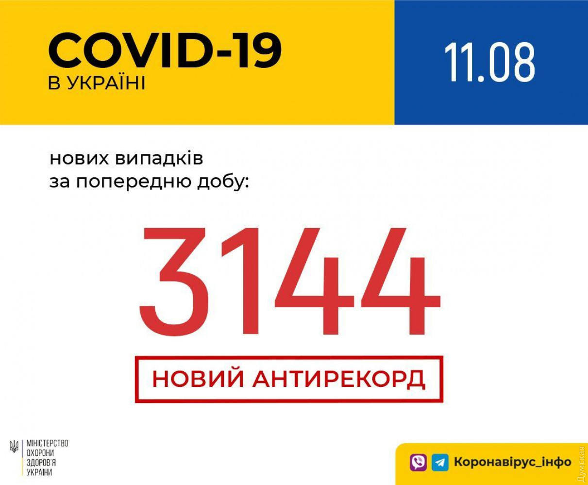 10 сентября в Украине был установлен новый антирекорд по темпам распространения коронавируса. За день выявили 3144 инфицированных (уже 148756 человек с начала пандемии). Как сообщили в Минздраве, «лидирует» Киев – 404 новых заболевших за сутки (16523), за ним идет Одесская область – 283 (9157) и Харьковская область – 280 (12122). Вчера от осложнений «ковида» умерли 53 украинца (3076 за время эпидемии). Вылечились 1128 пациентов (67005). Подозрения на COVID-19 получили 3285 человек (уже 212029 за время пандемии). СМЕРТЬ РОСІЙСЬКИМ ОКУПАНТАМ! Помітили помилку? Виділяйте слова з помилкою та натискайте control-enter |