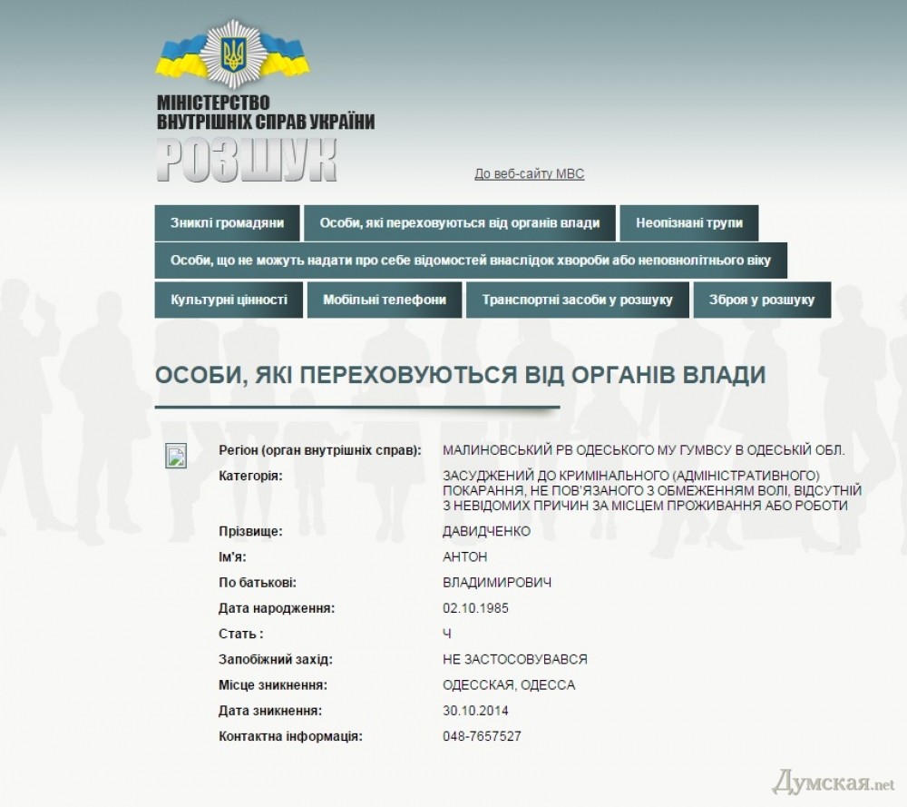 Инициатором поиска осужденного общественника, который «отсутствует по месту проживания», стал Малиновский райотдел милиции (Антон зарегистрирован в этом районе).