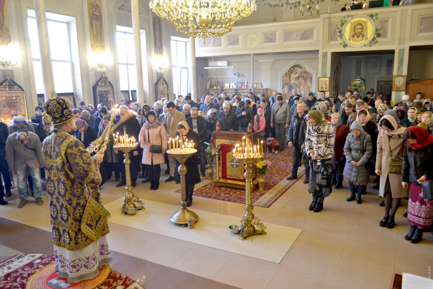 Архиереи ПЦУ молились в Одессе за отражение вражеского нашествия и освобождение украинцев, томящихся в российских тюрьмахБожественная литургия святого Василия Великого и молебен за освобождение военнопленных моряков и других узников Кремля прошли сегодня, во второе воскресенье Великого поста, в одесском кафедральном соборе Рождества Христова Православной церкви Украины. Как сообщили в Одесской епархии ПЦУ, возглавил богослужение председатель синодального управления военного духовенства — митрополит Черкасский и Чигиринский Иоанн. Ему сослужили одесский епископ Павел, председатель православной миссии по защите прав человека и заключенных лиц - архиепископ Симферопольский и Крымский Климент и другие священнослужители. «Во второе воскресенье Великого поста православные чтят память святого Григория Паламы, который жил в XIV веке. Он учил, что за подвиг поста и молитвы Господь освещает верующих своим благодатным светом, которым Он сиял на Фаворе», — рассказали в епархии. Архиереи молились за освобождение нашей Родины от нашествия иноземцев, утверждение в Украине единой поместной православной церкви, за освобождение военнопленных моряков ВМС и узников Кремля и за то, чтобы свершилось справедливое избрание главы нашего государства. На богослужении присутствовали семьи пленных и командование ВМСУ. СМЕРТЬ РОСІЙСЬКИМ ОКУПАНТАМ! Помітили помилку? Виділяйте слова з помилкою та натискайте control-enter |
