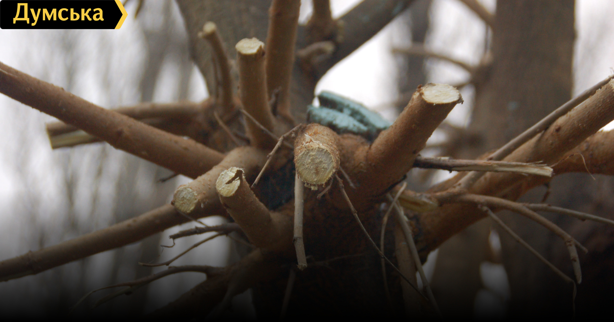 В сквере на Генуэзской «неизвестные» обрезали деревья, которые пережили предыдущую обрезку