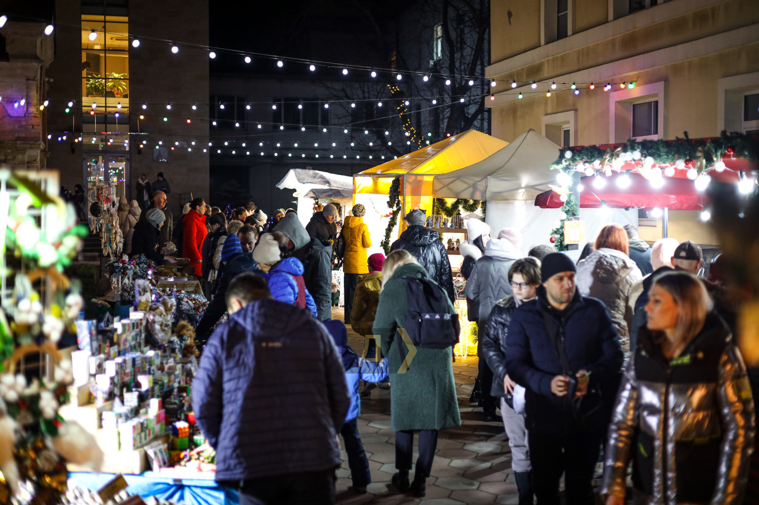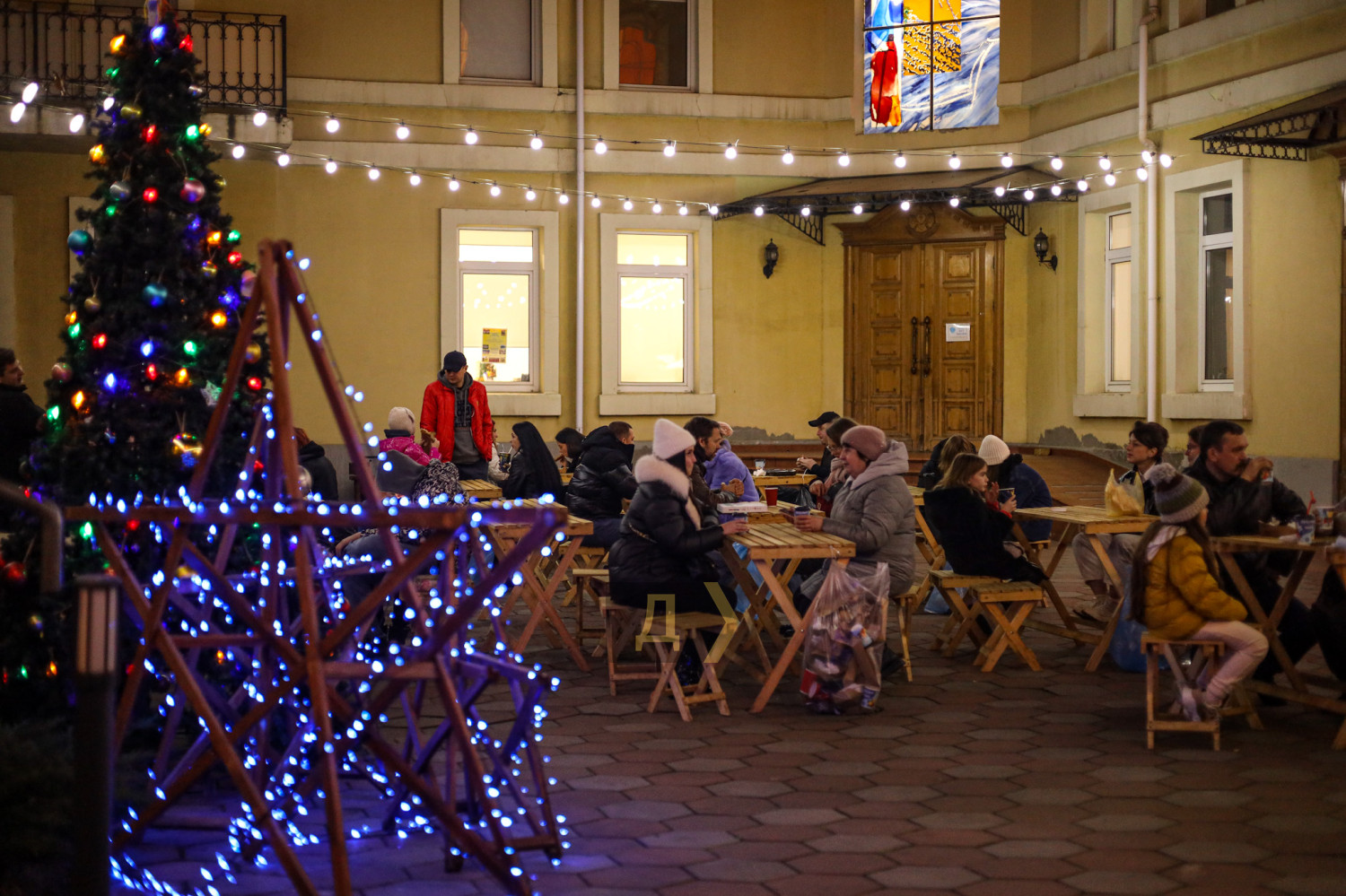 Традиційний Різдвяний ярмарок відкрився у внутрішньому дворі Кафедрального собору святого Павла, більш відомого як одеська Кірха, розташованого на Новосельського, 68. Як повідомляє наш кореспондент, на території, позначеній різнокольоровими гірляндами, встановлено близько десятка торговельних наметів зі святковими частуваннями: німецькими ковбасками, різдвяними штруделями, популярними в Німеччині брецелями і, звісно, глінтвейном. Одесити явно скучили за святковим настроєм і смачною вуличною їжею, і шикуються біля наметів у довжелезні черги. Вжити частування можна просто на подвір'ї — біля невеликої фотозони встановлені розсувні дерев'яні столики. Ярмарок зібрав майстрів рукоділля. Тут можна купити різдвяний вінок, зібраний з ялинкових гілок та іграшок, всілякі прикраси, обереги, сувеніри зі стабілізованого ягелю та багато іншого. Двір відкритий з 11 до 21:00. Ярмарок триватиме до 26 грудня. Помітили помилку? Виділяйте слова з помилкою та натискайте control-enter |