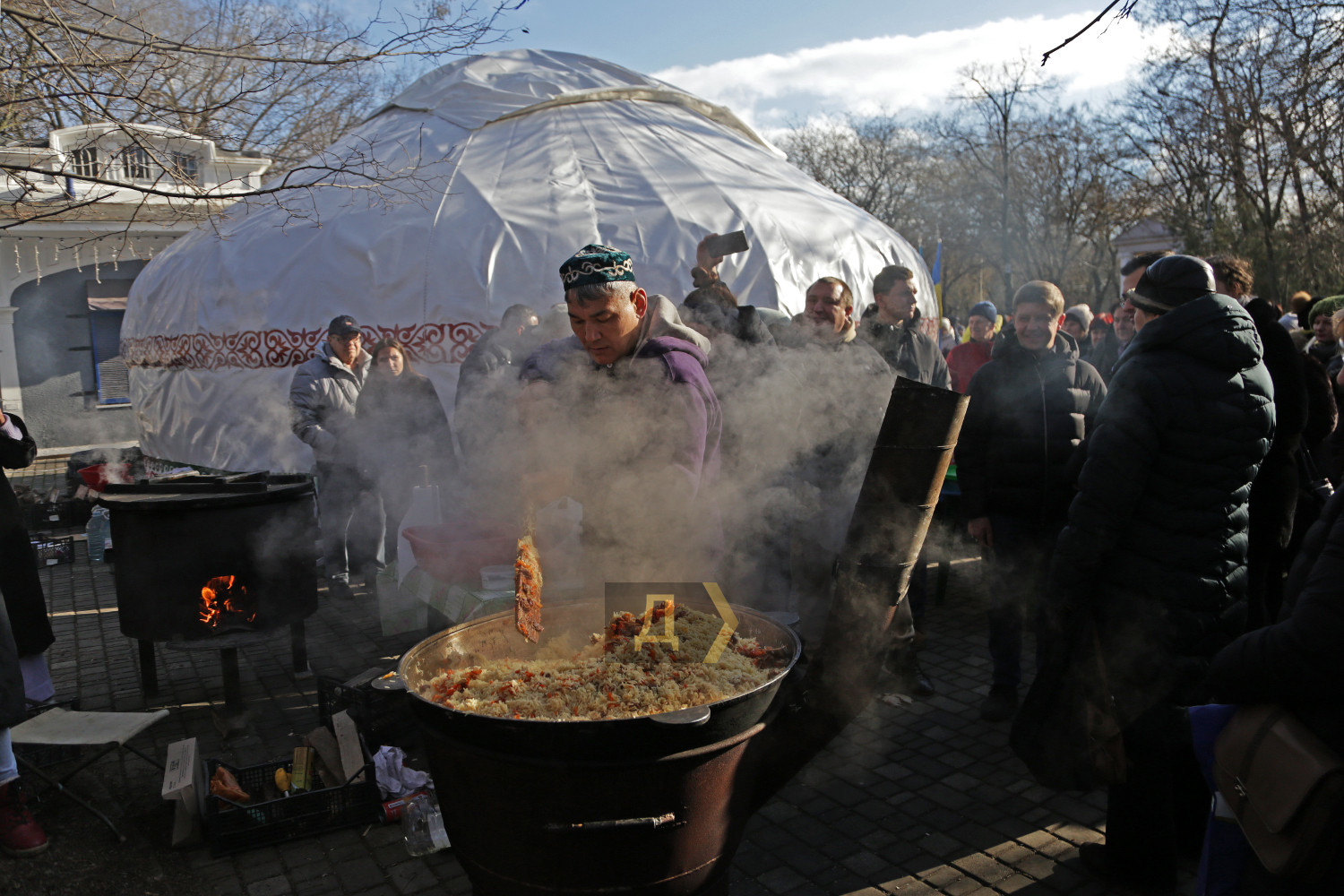 Юрту незламності відкрила в неділю казахська діаспора в Одесі. Це вже п'ятий куточок казахської культури, відкритий в українських містах після повномасштабного вторгнення рф. «Сьогодні в одеському парку Шевченка відкрили п'яту в Україні юрту незламності. Це дуже символічно, адже Кобзар відбував заслання за указом російського царя саме в Казахстані. Тут можна обігрітися, зарядити гаджети та познайомитися з культурою Казахстану. Підтримка казахського народу в найважливіші історичні часи для України завжди залишиться в нашій пам'яті», — зазначив депутат Одеської облради, член фракції «Європейської Солідарності» Февзі Мамутов. Марат Дарменов, який збирав найпершу юрту в Бучі, неспішно помішує у величезному чані ароматний плов і розповідає, з чого все починалося. «Перший великий казахський плов я готував у Гостомелі, відразу після звільнення цього міста. Спочатку дуже боявся, що не вийде, все-таки 20 кг рису і 100 літрів води, — згадує Марат. — У людей там нічого не було — ні газу, ні електрики, тому бабусі й дідусі підходили, дякували й плакали. Відтоді ми щотижня їздимо туди, готуємо і роздаємо плов». Пізніше Марат брав участь у збиранні й решти чотирьох юрт незламності, відкритих в Україні, хоча до цього востаннє робив це разом із батьками 40 років тому, коли йому було лише дванадцять. «Дзвонить мені поважна людина з Казахстану, каже, я відправив в Україну шість юрт, кажуть, ти вмієш збирати, зустрічай. А я ледве-ледве пам'ятаю, як це робиться, але розібрався, все вийшло. Найпершу юрту поставили в Бучі, потім у Києві, потім Харків, Львів і ось у вас в Одесі», — зазначає Марат. Треба сказати, що доставка юрт в Україну також перетворилася на особливу пригоду. Фура не могла їхати через росію, тому шлях з Алмати через Каспійське море, Азербайджан, Грузію, Туреччину, Болгарію і Румунію з поломками автомобіля зайняв близько місяця. Першу юрту в Бучі почали збирати 3 січня, а офіційне відкриття відбулося через три дні. Юрти незламності також просять встановити в себе Дніпро і Запоріжжя, але наразі залишилася лише одна невелика, яку хочуть поставити в селі Моринці Черкаської області на батьківщині Тараса Шевченка. Поки Марат розповідав нам про доставку та встановлення юрт незламності, за пловом його приготування вишикувалася ціла черга — кілька сотень одеситів терпляче чекали можливості підійти до столу. Досвідчений кухар також розповів про тонкощі приготування плову: «Рис у нас у Казахстані, звичайно, інший, м'ясо з морквою готується внизу великого чана, рис зверху. Перемішується все тільки перед самою подачею на стіл». Частування вдалося на славу, багато хто прийшов сьогодні в парк Шевченка спеціально, щоб спробувати справжній казахський плов. Зігрітися і підзарядити гаджети в юрті можна буде в будь-який час доби. За словами організаторів, вона точно залишиться в Одесі протягом усього березня. Фото Сергія Смоленцева СМЕРТЬ РОСІЙСЬКИМ ОКУПАНТАМ! Помітили помилку? Виділяйте слова з помилкою та натискайте control-enter |