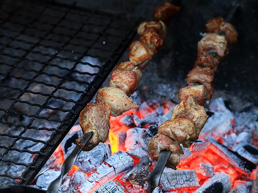 На Приморском бульваре работает традиционная ярмарка. Кто не соблюдает пост, могут подкрепиться шашлыками и запить их глинтвейном.