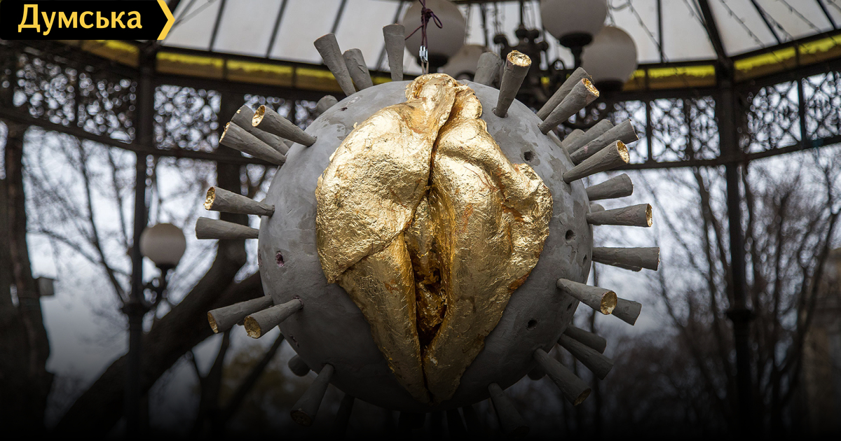 «Пандемия домашнего насилия»: в Горсаду презентовали новый арт-объект — в виде коронавируса с женским половым органом