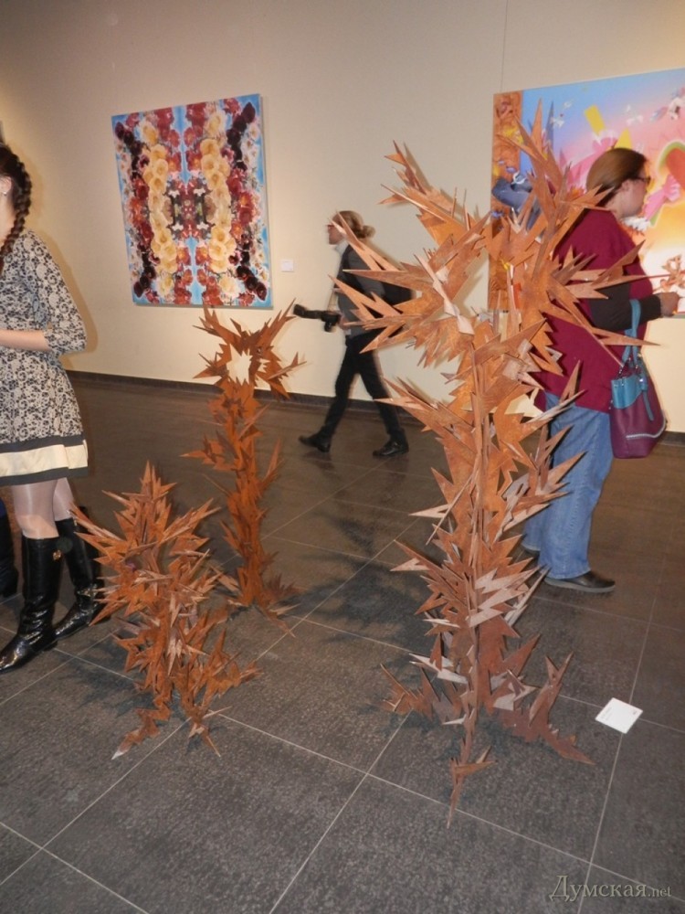 Другой художник-прорицатель Виктор Проданчук создал ржавую скульптуру под названием «Композиция война» еще в 2009 году. Его остроконечные деревья, соединившие в себе образ колючей проволоки и взрыв гранаты, постоянно мешались под ногами у великосветских гостей и падали.