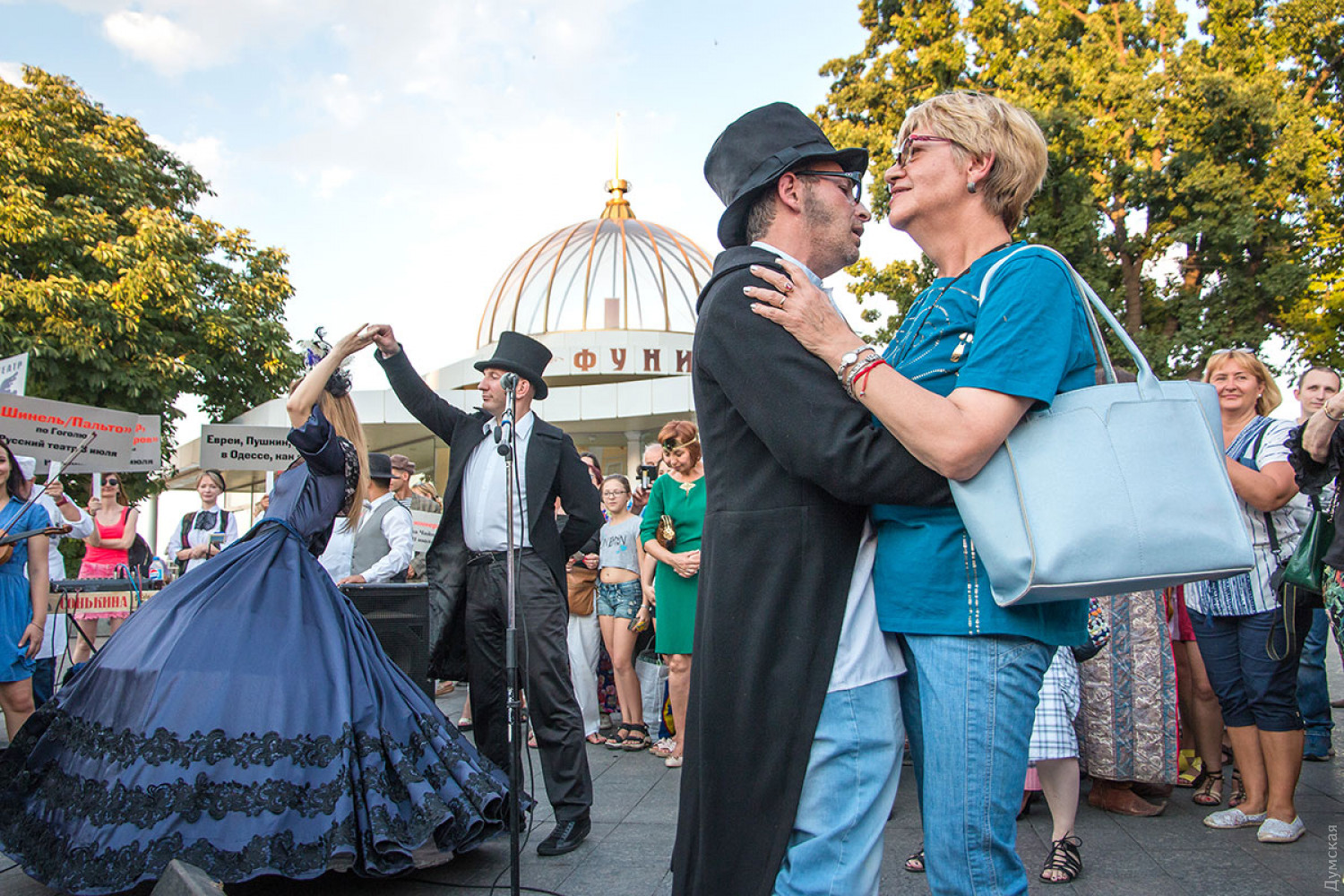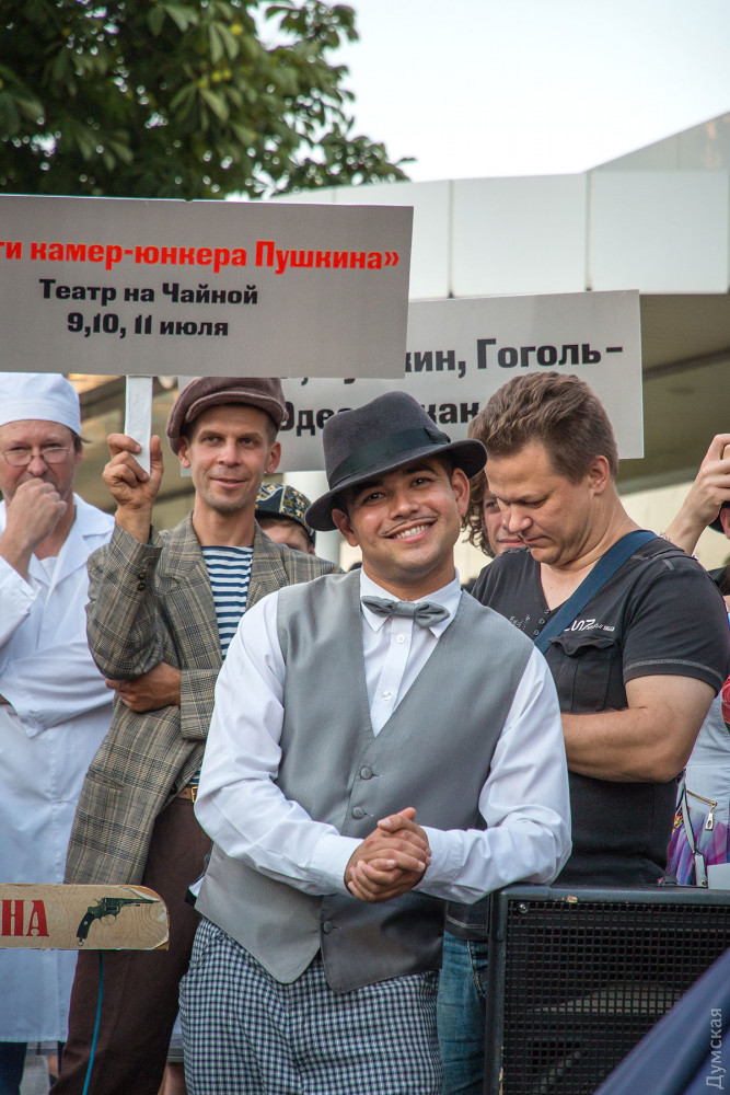 Артисты шумною толпой: на Приморском бульваре прошел интеллектуальный карнавал «Одесский каленДурь»Актеры театра «Школа современной пьесы» Иосифа Райхельгауза и сам мэтр примкнули сегодня к интеллектуальному карнавалу «Одесский каленДурь», который уже в третий раз организовывает туристическое агентство «Тудой-Сюдой». Участники шествия в образах героев одесских анекдотов яркой и громкой толпой проследовали по Приморскому бульвару под аккомпанемент оркестра. Таким образом выдающийся одесский театральный режиссер проанонсировал три новых спектакля, которые с 7 по 11 июля пройдут на лучших подмостках города. Конечной точкой карнавала стала площадь возле памятника Дюку де Ришелье, где ровно в 7:40 вечера состоялся небольшой концерт. «Это десятые юбилейные гастроли, и я очень рад, что Одесса так тепло встречает нас, — рассказал присутствующим Райхельгауз. — Каждое лето я не приезжаю сюда, я возвращаюсь домой». Специально для режиссера выпуск живого календаря был посвящен театральным и околотеатральным событиям Одессы прошлого и настоящего. Участники вспоминали известных одесситов, родившихся в июне и оставивших след в мировой театральной и литературной истории. В конце мероприятия Райхельгауз ответил на вопросы публики и разыграл два билета на один из спектаклей. Одесситы смогут увидеть постановки с 7 по 11 июля. Так, спектакль, собравший в себе почти 250 одесских анекдотов «Умер-шмумер, лишь бы был здоров», пройдет уже завтра в Русском театре. А 8 июля там же покажут мюзикл с танцами на льду по мотивам произведения Николая Гоголя «Шинель/Пальто». 9, 10 и 11 июля одесситов зовут на трагифарс «Спасти камер-юнкера Пушкина» в «Театре на Чайной». Отметим, все спектакли Иосифа Райхельгауза проходят при поддержке депутата Верховной Рады Алексея Гончаренко. Фото, видео — Александр Гиманов СМЕРТЬ РОСІЙСЬКИМ ОКУПАНТАМ! Помітили помилку? Виділяйте слова з помилкою та натискайте control-enter |