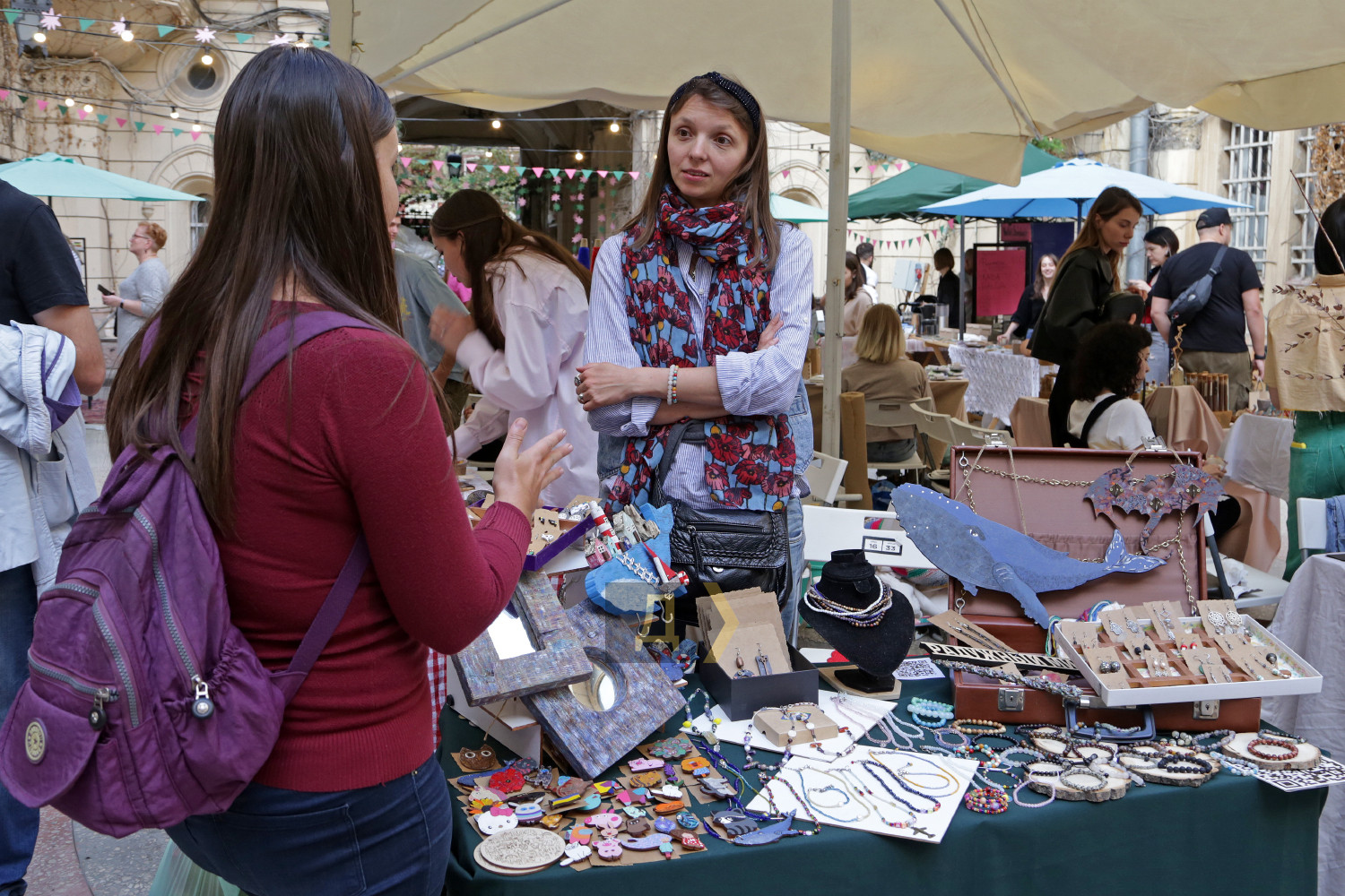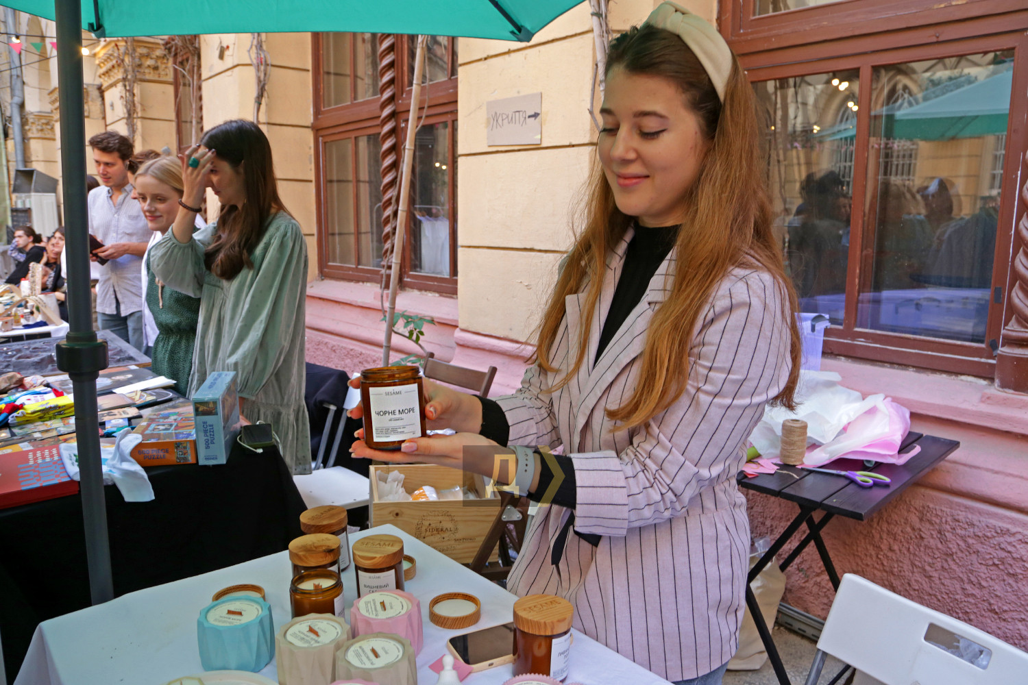 Благотворительная ярмарка под названием «Культурная реставрация» состоялась сегодня во внутреннем дворике одесской филармонии. Винтажная архитектура дворика, как нельзя лучше подошла к ярмарке. Начинающие одесские дизайнеры, художники, ювелиры и скульпторы предлагали одесситам свои изделия, чтобы часть от вырученных средств передать на восстановление бомбоубежища, расположенного в парке Шевченко. Ранее коллектив «Зеленого театра» организовал мероприятие для сбора денег на его оборудование. Администратор «Зеленого театра» Виктория Грубник отметила, что «Культурная реставрация» проводится уже второй раз. Средства, собранные с первого мероприятия, перечислили фонду «Вернись живым», который помогает Вооруженным силам Украины. «Именно наш коллектив является инициатором «Культурной реставрации». Наше пространство в этом году не открылось, поэтому мы вынуждены делать это здесь, в филармонии, — рассказала администратор. — Для посетителей мы придумали новую систему донатов. Чтобы войти на мероприятие, надо купить входной билет, который стоит от 50 гривен. Если человек оставляет 100 гривен и больше, он получает подарок от нас – стикер «Зеленого театра». Продавцы и хозяева лотков тоже часть денег перечислят на благотворительность». Одним из самых интересных мастер-классов стало изготовление окопных свечей. Небольшая окопная свеча горит около трех часов, она поможет нашим бойцам разогреть пищу и долгое время служит источником тепла и света. Для изготовления свечи в обычную металлическую банку от сгущенки надо вложить упаковочный картон, залив его растопленным парафином или воском. Ее можно использовать не только на фронте, но и в домах и квартирах, тем более, что эта зима обещает быть непростой. Фото Сергея Смоленцева Заметили ошибку? Выделяйте слова с ошибкой и нажимайте control-enter |