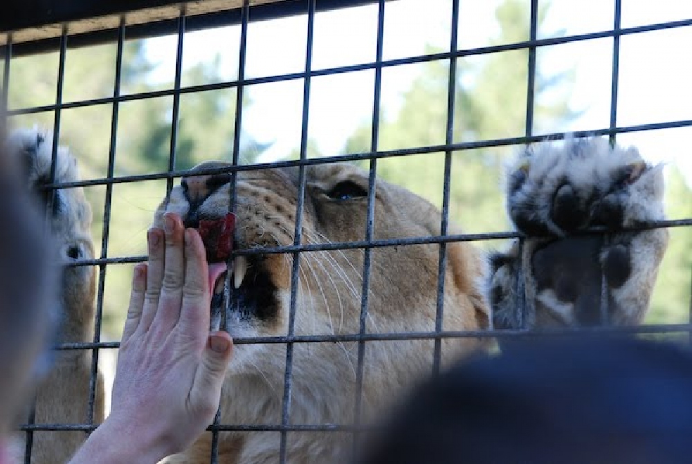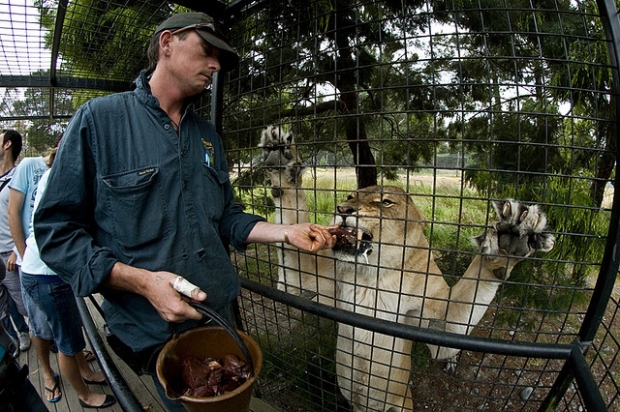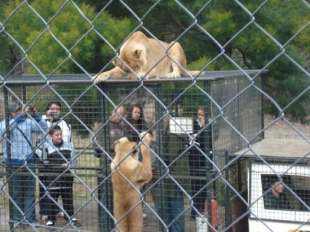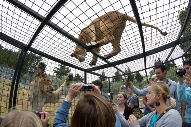 Администрация новозеландского парка «Орана» придумала необычное развлечение для своих зверушек. Работники парка решили заключать посетителей в клетку и показывать людей львам, которые свободно разгуливают по парку. Подобные прогулки на модернизированном авто с металлической клеткой, заполненной людьми, работники парка совершают один раз в день. Причем, стоимость путешествия для каждого «заключенного» составляет 30$. Во время прогулки львы делают с клеткой все, что пожелают — ходят по крыше, пытаются прогрызть решетку или просто берут куски мяса с ладони посетителей. К слову, с ладони в парке можно покормить не только львов, но и жирафов. А если посетитель понравится жирафу больше чем остальные, то в ответ на кормежку можно получить даже поцелуй. Комментарии размещаются сторонними пользователеми нашего сайта. Мнение редакции может не совпадать с мнением пользователей.