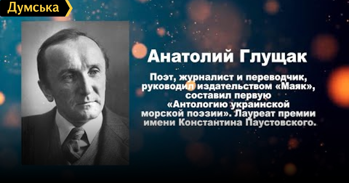 Анатолий Глущак — поэт, журналист и переводчик, руководил издательством «Маяк», составил первую «Антологию украинской морской поэзии». Лауреат премии имени Константина Паустовского.