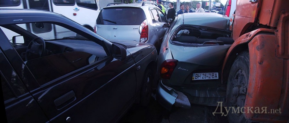 Очередная масштабная авария на «Красном кресте» в Одессе (Люстдорфская дорога угол Транспортной улицы). Сегодня вечером там столкнулись семь автомобилей. Пострадало как минимум три человека. Как передает с места событий корреспондент «Думской», авария началась со столкновения груженого глиной КамАЗа и малолитражки «Фиат». Грузовик двигался со стороны города в сторону первой станции Люстдорфской, легковое авто — в центр. Ударом «итальянца» отбросило на несколько метров, а произведение Камского автозавода, уходя от столкновения со встречным потоком, протаранило ряд машин, стоявших на перекрестке. Трое участников аварии госпитализированы с травмами разной степени тяжести. Погибших нет. У КаМАЗа слегка поцарапан бампер. Движение затруднено начиная от вокзала до площади Толбухина. СМЕРТЬ РОСІЙСЬКИМ ОКУПАНТАМ! ![]() Водителю "итальянца" еще очень повезло: удар, судя по вмятине, шёл по касательной, и на встречке отброшенную машину никто не сбил Помітили помилку? Виділяйте слова з помилкою та натискайте control-enter |