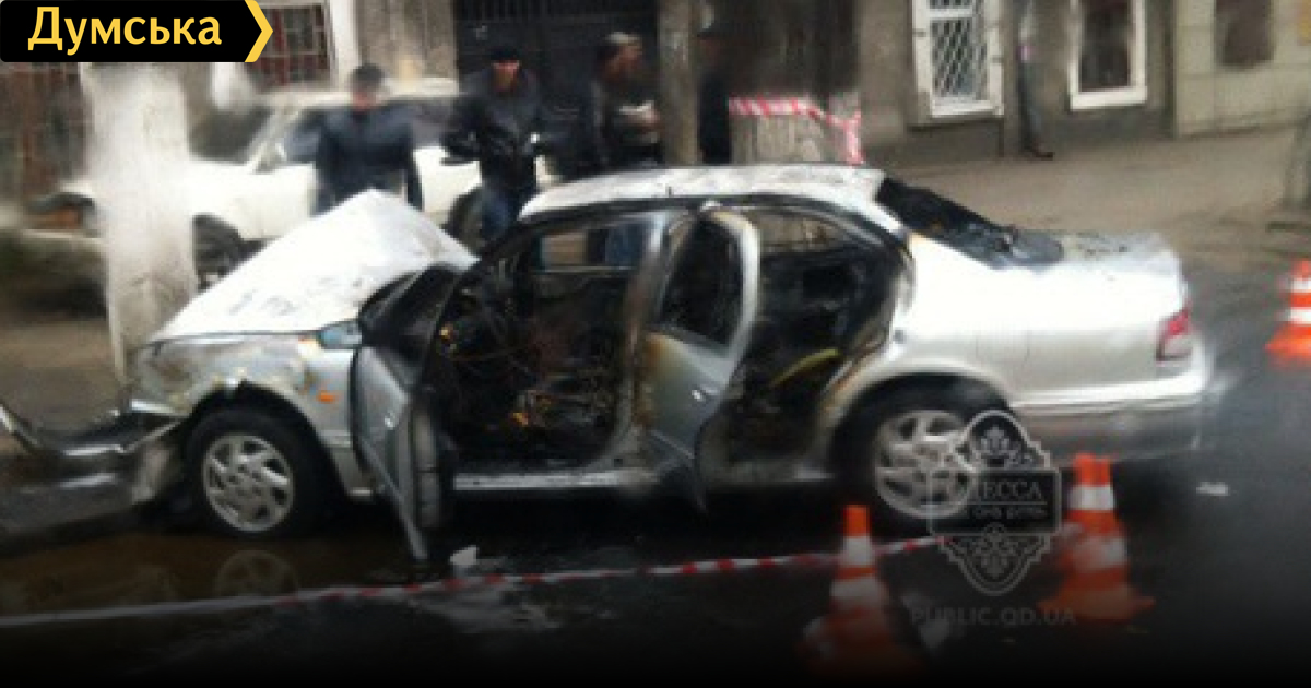 Авария на одесской Молдаванке: автомобиль врезался в столб и загорелся