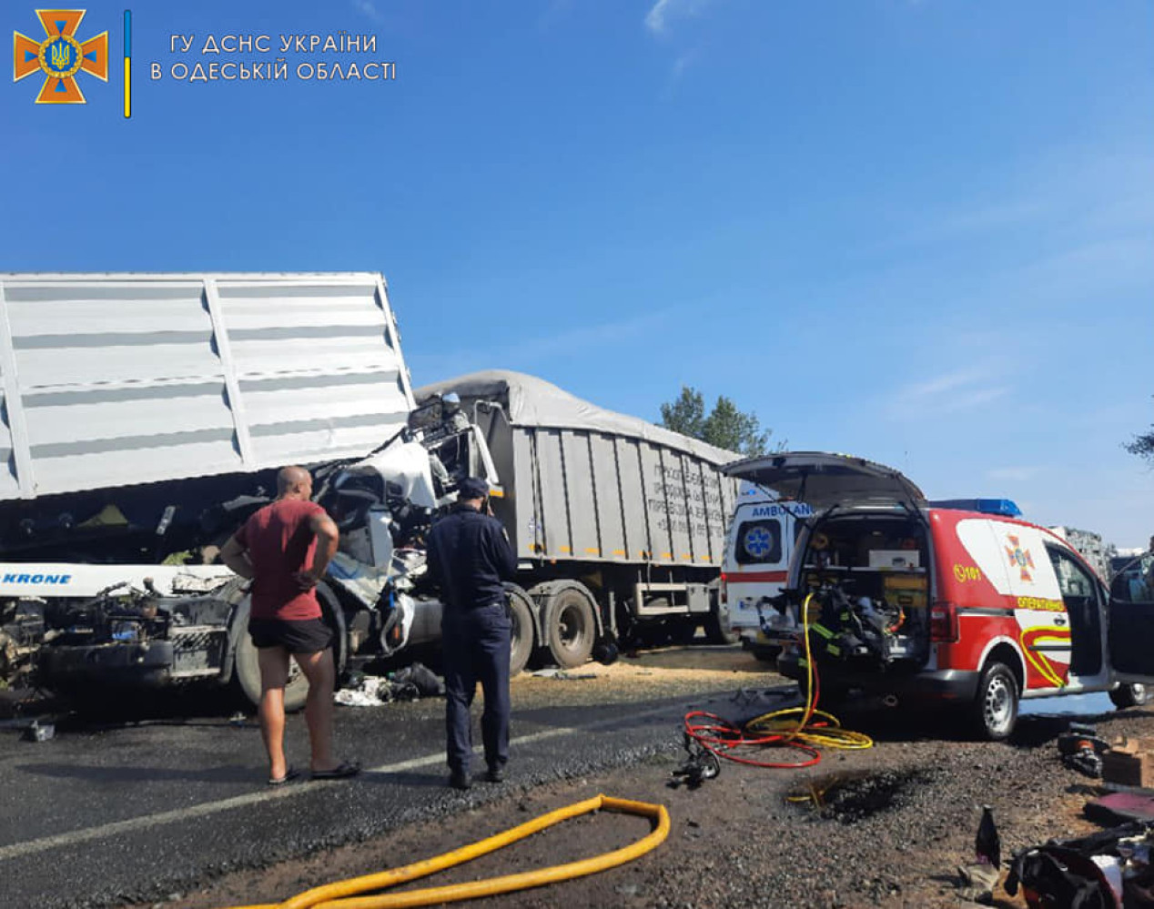Аварія за участю трьох фур паралізувала трасу Одеса-Рені: одного з водіїв довелося звільняти з розчавленої кабіни (фото, відео)Рух трасою Одеса-Рені ускладнений через серйозну аварію біля села Кирнички. В Ізмаїльському районі сталася дорожньо-транспортна пригода за участю трьох вантажівок, повідомляють в пресслужбі ДСНС регіону. Одного з водіїв рятувальникам довелося діставати з кабіни за допомогою гідравлічного інструменту. Надзвичайники зрізали дах та вилучили постраждалого з автомобіля. Від ДСНС було залучено дві одиниці техніки та шість вогнеборців СМЕРТЬ РОСІЙСЬКИМ ОКУПАНТАМ! Помітили помилку? Виділяйте слова з помилкою та натискайте control-enter |