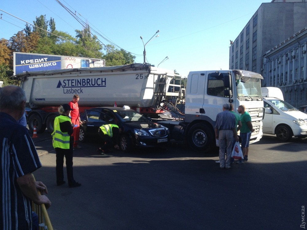 Сегодня утром на пересечении Высокого переулка и улицы Водопроводной произошло ДТП. Грузовой автомобиль при повороте зацепил такси. Авария произошла на трамвайном полотне и полностью блокировала движение электротранспорта в обоих направлениях. Пожилому водителю такси стало плохо с сердцем. Медики оказывают ему помощь на месте.