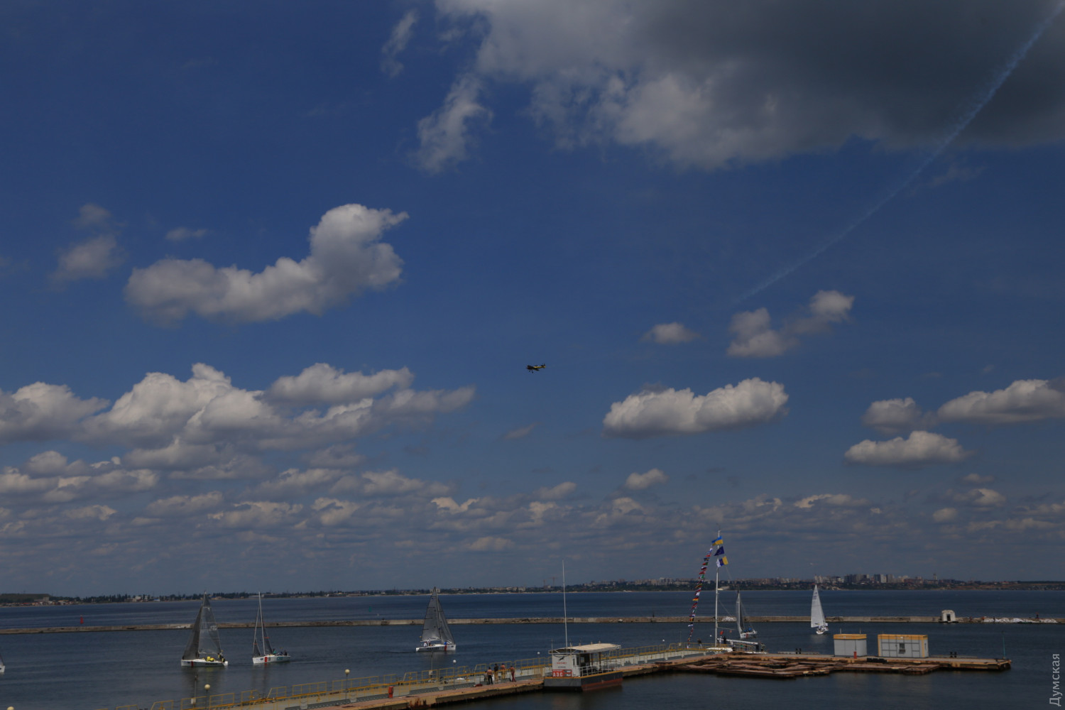 Как передает корреспондент «Думской», примерно в 12:30 стартовала регата. Шестерка красавиц-яхт устроила гонку вокруг старого волнолома от Воронцовского маяка до Практической гавани. Чуть позже над портом появилась «Аннушка» одесского аэроклуба.