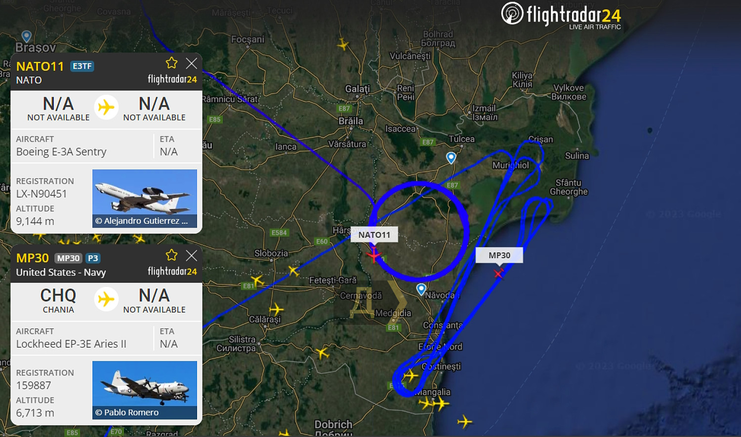 Одразу два розвідувальні літаки НАТО сьогодні вдень баражували над румунською частиною дельти Дунаю. Рано-вранці американський чотиримоторний турбогвинтовий Lockheed EP-3E Aries II злетів з авіабази Ханья, що на грецькому острові Крит. Через 12 годин сканування північно-західної частини Чорного моря він повернувся на аеродром вильоту. Одночасно з «Локхідом» у небі над Румунією висіла «летюча тарілка» — Boeing E-3A Sentry ВПС Нідерландів. Увечері, відпрацювавши завдання, літак приземлився на турецькій авіабазі Конья. Поки незрозуміло, з чим пов'язана така активність натовської авіарозвідки — можливо, з ранковим ударом рф по острову Зміїний. СМЕРТЬ РОСІЙСЬКИМ ОКУПАНТАМ! Помітили помилку? Виділяйте слова з помилкою та натискайте control-enter |