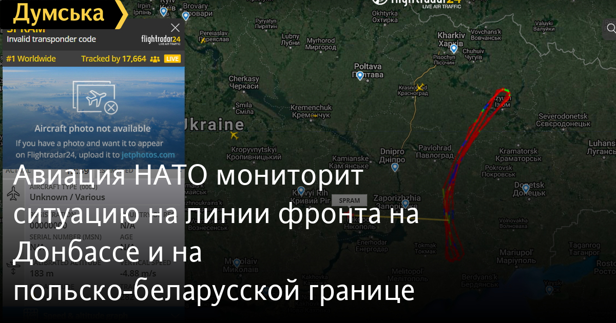 Авиация НАТО мониторит ситуацию на линии фронта на Донбассе и на польско-беларусской границеАмериканская и британская разведывательная авиация патрулирует линию фронта на Донбассе и границу Польши с Беларусью. Американский беспилотный стратегический разведчик Northrop Grumman RQ-4B Global Hawk, утром взлетев с одной из авиабаз на Ближнем Востоке, днем вошел в воздушное пространство Украины. Несколько часов он патрулировал линию фронта на Донбассе. Интересно, что в процессе мониторинга разведчик иногда менял высоту, снижаясь до 5 км. Британский разведчик Boeing RC-135W Rivet Joint, стартовав днем с авиабазы Милденхолл, провел разведку границы Польши с Беларусью. СМЕРТЬ РОССИЙСКИМ ОККУПАНТАМ! Заметили ошибку? Выделяйте слова с ошибкой и нажимайте control-enter |