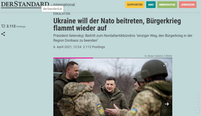 Австрийское издание назвало конфликт с РФ “гражданской войной в Украине”, в посольстве отреагировалиАвстрийская газета Der Standard написала, что продолжающиеся с 2014 года боевые действия на востоке Украины, это «гражданская война». Этой ситуацией в Твиттере возмутился посол Украины в Австрии Александр Щерба. «Украинские земли. Флаги России, боевики и оружие – по одну сторону, по другую – украинцы. Но для «Der Standard» так выглядит не захват и оккупация, а «гражданская война»», — отметил дипломат. Отмечается, что опубликован материал «Украина хочет вступить в НАТО, снова разгорается гражданская война». Причем термин «гражданская война» газета употребила, ссылаясь на украинского гаранта, который якобы использовал это выражение в своей речи. «Президент Владимир Зеленский заявил во вторник, что присоединение Украины к военному альянсу НАТО является «единственным способом положить конец гражданской войне в Донбассе», ранее он беседовал по телефону с генсеком Йенсом Столтенбергом», — говорится в статье «Der Standard». Щерба в одной из своих постов обратился к австрийскому изданию, смогут ли они разместить правдивую информацию об украино-российском вооруженном противостоянии. «Дорогой «Der Standard», придет ли когда-нибудь время для честной дискуссии относительно того, что вы называете «гражданской войной», или у вас дозволена только одна точка зрения?», — поинтересовался посол. Александр Щерба добавил, что ранее газета не захотела опубликовать его комментарий на материал австрийского архитектора Вольфа Прикса, чье бюро проектировало оперный театр в аннексированном Крыму, передает «Укринформ». По словам дипломата, редакция объяснила это нежеланием «начинать дискуссию» на страницах издания.