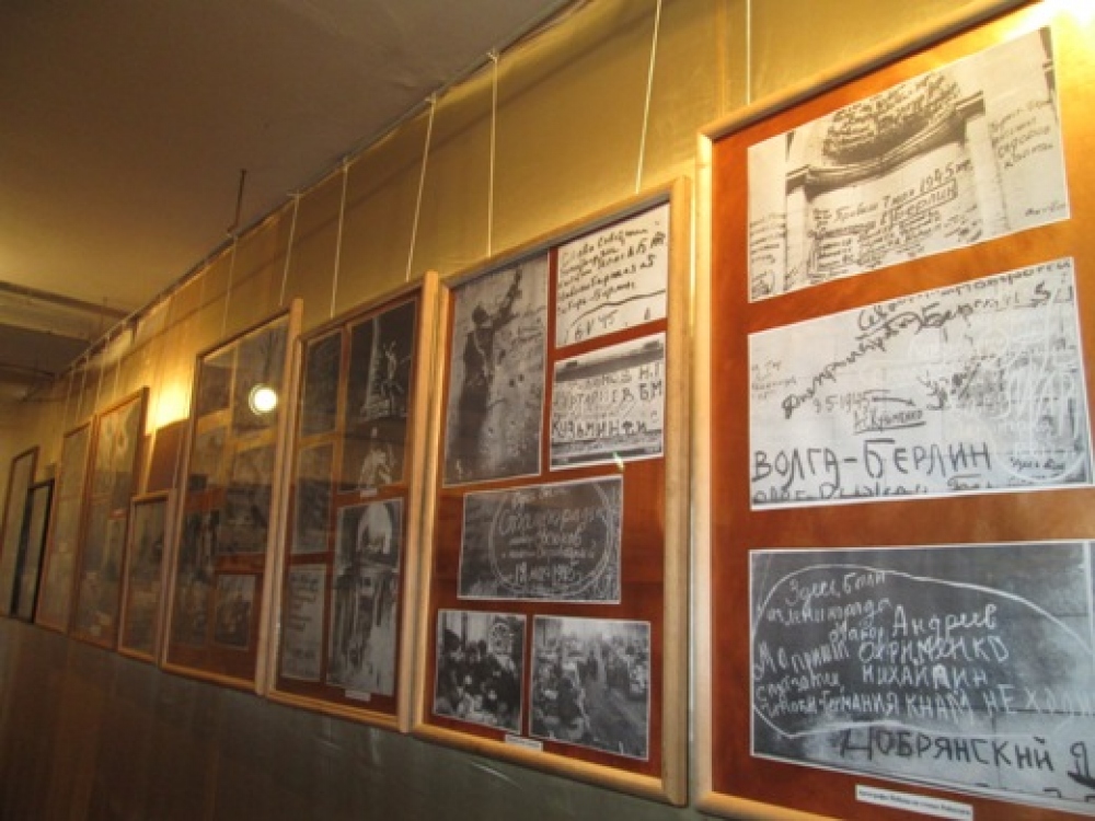 «Помимо фотоснимков о военных днях и оккупации в Берлине, у нас в музее представлена копия Знамени Победы, которое 30 апреля 1945 года в 14 часов 25 минут водрузили над куполом рейхстага сержанты Берест, Егоров и Кантария. 2 мая командование Берлинского гарнизона капитулировало, свыше 300 тысяч немецких солдат и офицеров сдались в плен и Берлинская операция завершилась», — рассказала разработчик выставки, заведующая военно-историческим отделом музея Марина Прокофьева.