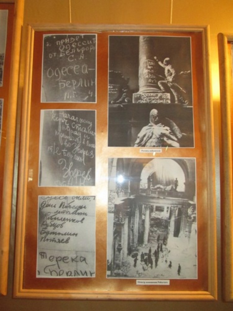 На стендах представлены копии фотографий, иллюстрирующие наступательную операцию на Берлин, которая проводилась с 16 апреля по 8 мая 1945 года и стала кульминацией войны, пишет сайт города Одессы.