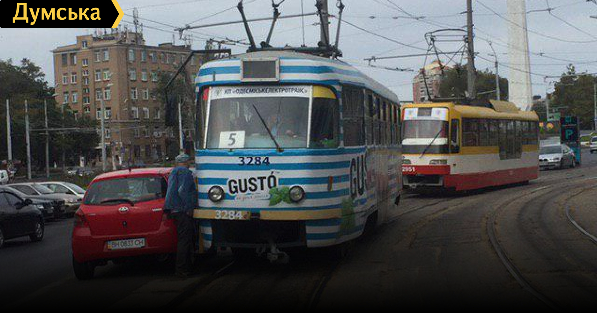 Неприятный инцидент, доставивший неудобства одесситам и гостям города, произошел сегодня на площади 10 Апреля. Некий автохам припарковал свою машину так, что сделал невозможным проезд трамваев маршрута №5.