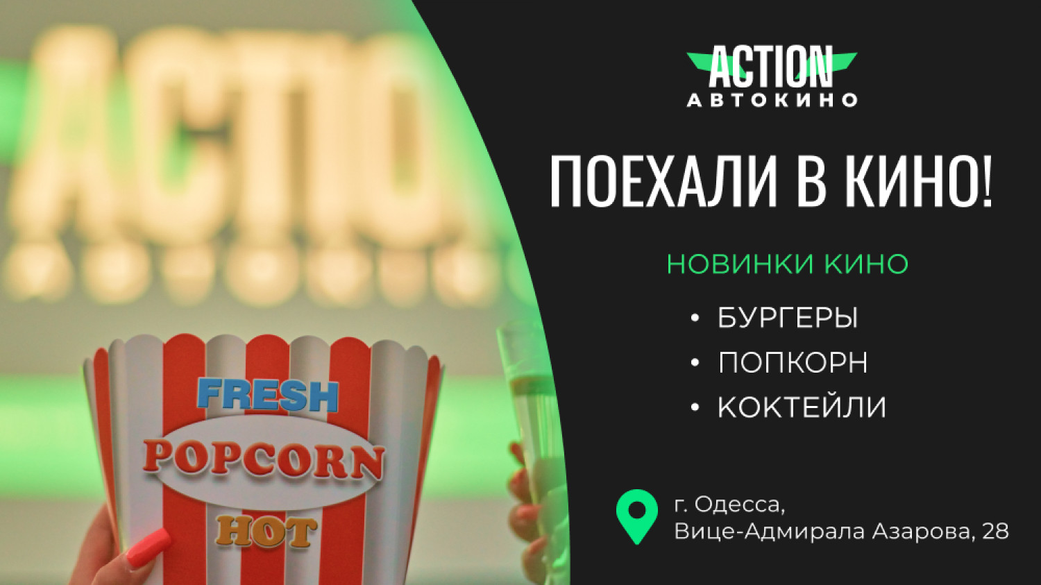 Автокинотеатр Action приглашает на кинопремьеры под открытым небом (новости компаний)Автокинотеатр Action (пер. Вице-Адмирала Азарова, 28) приглашает одесситов и гостей города на киносеансы под открытым небом. В расписании автокинотеатра Action на ближайшие дни - «Холодный расчет», «Плохие домохозяйки», «После падения». «Вас ждут кровавый боевик, романтическая драма с неожиданным финалом и порция отборного юмора в лучшем автокинотеатре Action. А также вкуснейший попкорн и напитки, сочные бургеры и закуски от Фарша, авторские коктейли Тhe Fitz, самые дымные кальяны», — отметили в автокинотеатре. Начало сеансов по будням в 20:00, на выходных в 19:30. Стоимость билетов на пуфы – 140 грн, автомобиль – 210 грн. Бронь билетов по телефону: 095 065-19-39. Подробную информацию можно получить на сайте Action Cinema, а также на странице автокинотеатра в Instagram – @actioncinemaodessa. СМЕРТЬ РОСІЙСЬКИМ ОКУПАНТАМ! Помітили помилку? Виділяйте слова з помилкою та натискайте control-enter |