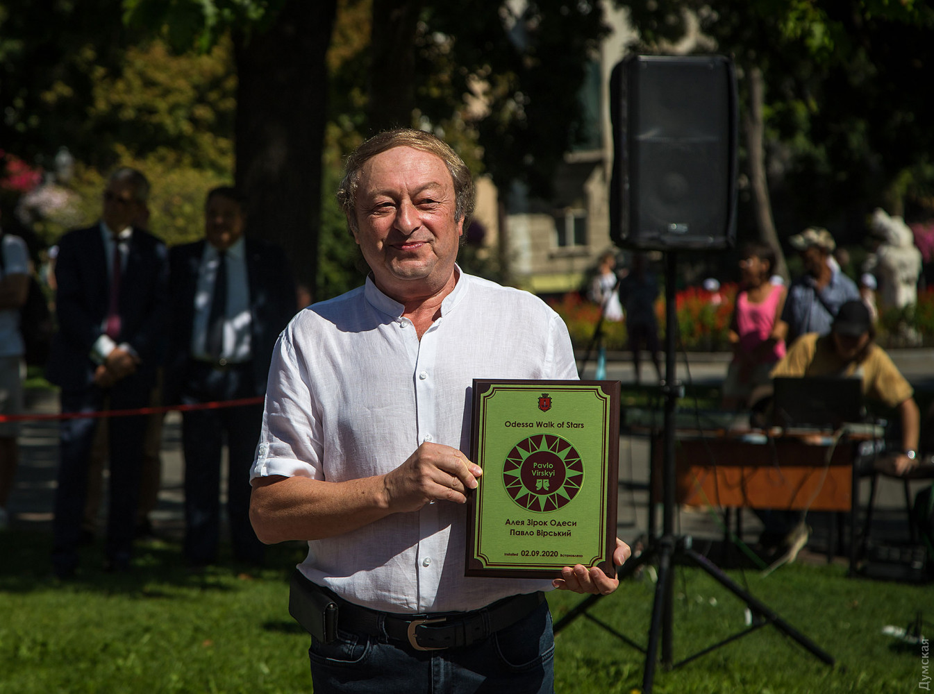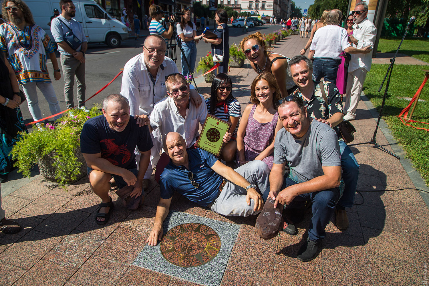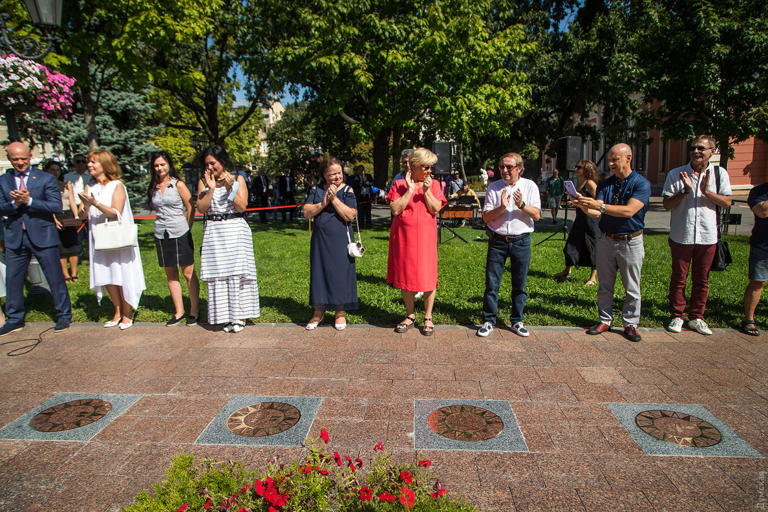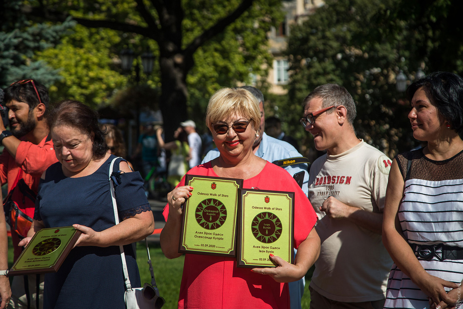 Новыми именами пополнилась Аллея одесских звезд на Ланжероновской, передает корреспондент «Думской». Теперь здесь сияют 39 табличек, вмонтированных в гранитную мостовую. В честь Дня города были увековечены имена композитора Исаака Дунаевского, нобелевского лауреата Ивана Бунина, писателя Александра Куприна, балетмейстера и хореографа Павла Вирского, а также комик-труппа «Маски». Как рассказала журналистам руководитель департамента культуры и туризма мэрии Татьяна Маркова, топонимическая комиссия выбирала из 15 предложений. «В этом году мы рискнули, и нас поддержала топонимическая комиссия, открыть звезду театра «Маски», — говорит Маркова. — Теперь здесь имена не только тех, кто, к сожалению, уже ушёл, но и тех, кто с нами и ежедневно прославляет наш город». По словам руководителя творческого коллектива с 36-летней историей Народного артиста Украины Георгия Делиева, «это огромная честь — находиться в плеяде титанов, чьи звезды уже открыты и будут открыты на Ланжероновской». Его коллега, Народный артист Украины Борис Барский подчеркнул, что «особое счастье — при жизни получить звезду как символ признания от своего родного города». фото — Александр Гиманов СМЕРТЬ РОСІЙСЬКИМ ОКУПАНТАМ! Помітили помилку? Виділяйте слова з помилкою та натискайте control-enter |