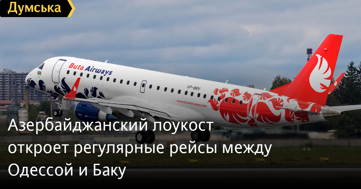 Азербайджанская авиакомпания Buta Airwais с 31 марта этого года откроет прямое регулярное авиасообщение между Баку и Одессой. Такая информация появилась в расписании одесского международного аэропорта. Дважды в неделю — по четвергам и воскресеньям самолеты Embraier 190 будут совершать рейсы в наш город из столицы Азербайджана. Buta Airwais является низкобюджетной авиакомпанией — дочкой азербайджанского национального авиаперевозчика — «Азербайджанские авиалинии» (AZAL). Базируется в бакинском аэропорту «Гейдар Алиев». Флот состоит из восьми самолетов бразильского производства Embraier 190. Стоимость авиаперелета из Одессы в Баку пока неизвестна, но похоже, что «Бута» действительно является недорогим перевозчиком. Например, цена билета из Киева и из Стамбула в Баку примерно одинакова и составляет около 50 долларов США. СМЕРТЬ РОСІЙСЬКИМ ОКУПАНТАМ! Помітили помилку? Виділяйте слова з помилкою та натискайте control-enter Новини по цій темі: 13 листопада 2024: Як вкрали Одеський аеропорт: історія афери, документи, судові перспективи 18 квітня 2024: Ексмер Одеси Олексій Костусєв ховається від слідства в елітному районі Лондона: стала відома його адреса 29 березня 2024: Справа про заволодіння аеропортом "Одеса": ексвіцемер Орловський відбувся умовним терміном 28 лютого 2024: Відкрити українське небо: чим Бориспіль відрізняється від Бен-Гуріона і що потрібно зробити для відновлення авіасполучення? 23 лютого 2024: Костусєв ховається у Лондоні: за крадіжку одеського аеропорту його судитимуть заочно 11 грудня 2023: Ексмера Одеси Костусєва заочно постановили ув`язнити в СІЗО |