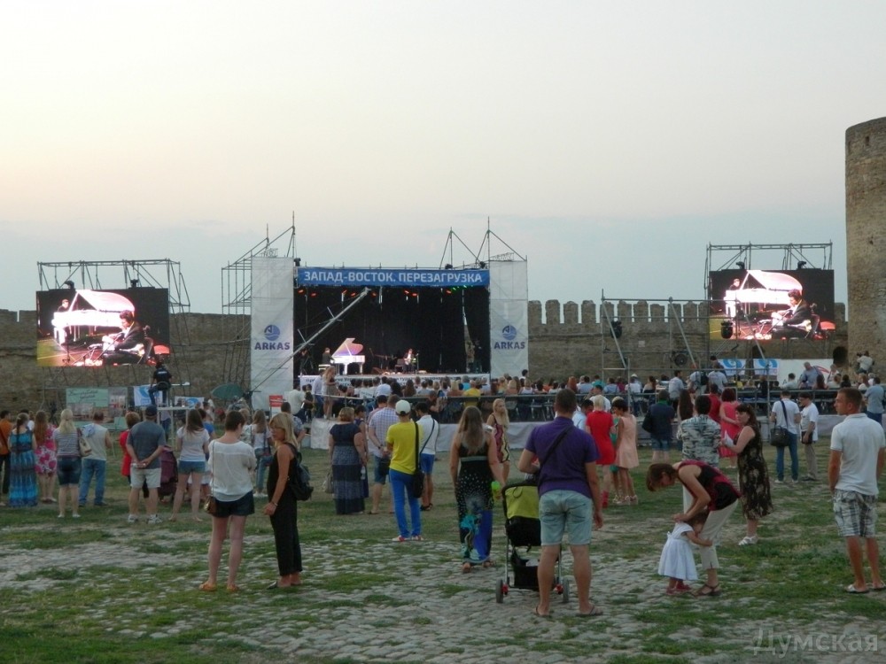 Бах в Akkerman Arena: Белгород-Днестровскую крепость хотят превратить в концертную площадку мирового уровняВ Одесской области накануне вечером презентовали новую концертную опен-эйр площадку — Akkerman Arena. В Белгород-днестровской крепости звучали «Гольдберг-вариации» Баха — свою программу «Запад – Восток. Перезагрузка» представили одесский пианист Алексей Ботвинов и турецкий перкуссионист Бурхан Очал. По оценкам журналистов, послушать музыкантов собралось около тысячи человек (официальных данных по проданным билетам пока нет). Цель проекта — превратить средневековую твердыню в концертную площадку мирового уровня. Примером могут служить древнеримские амфитеатры, средневековые замки и другие исторические памятники в Италии, Франции, Турции, где проходят масштабные концерты, фестивали, театральные представления. «Мы хотим развивать в Одесской области все направления туризма: медицинский, рекреационный, фестивальный. Фестивальный туризм направлен на то, чтобы привлекать внимание к историческим площадкам как в сезон, так и в межсезонье, — рассказала Ирина Папуша, член новой команды губернатора Михаила Саакашвили. — Проект Akkerman Arena не только привлечет туристов, но и станет хорошим толчком для развития Белгорода-Днестровского». Облгосадминистрация поддерживает начинание организационно и информационно. Инициатором и двигателем проекта стал непосредственно Алексей Ботвинов, который сам занимался поиском спонсоров выступления. Пианист верит, что Akkerman Arena ждет большое будущее. «Это концерт-презентация. Мы сейчас посмотрим на реакцию нашей власти, наших потенциальных инвесторов, спонсоров. Надеюсь, что с их помощью нам удастся поднять эту площадку. Это очень большие перспективы для всего края», — говорит музыкант. По его словам, дальнейшие планы станут известны в ближайшие пару недель. Для презентации в Гарнизонном дворе крепости установили лучшее звуковое и световое оборудование. В частности, использовали аппаратуру, которая служит организаторам львовского Alfa Jazz Fest, а также технику из Киева и Одессы. Из нашего города везли, например, белый рояль, на котором играл Ботвинов. Он «ехал» в Белгород-Днестровский в вертикальном положении, а на сцену инструмент поднимали с помощью специальных рельс. Техническим оснащением площадки занимались три фирмы, в общей сложности — около 30 человек. Руководил процессом известный одесский специалист Роман Топилов, который регулярно занимается установкой сцены и оборудования для опен-эйров на Потемкинской лестнице. «Мы начали «строиться» в пятницу утром. Ночью отрабатывали подсветку цитадели. К началу субботнего концерта все было готово», — рассказывает Топилов. Звук не подкачал, как это часто случается на местечковых концертах. Оказалось, что средневековая твердыня обладает прекрасной акустикой. В разных точках площадки не покидало ощущение, что Ботвинов и Очал играют в двух шагах от слушателей. О том, чтобы всем было видно, тоже позаботились: на двух больших экранах, установленных по бокам сцены, транслировалось изображение с десяти камер. Цены были более чем демократичными: места в VIP-секторе продавали по 300 гривен, входные билеты — по 50 (это всего на 10 гривен дороже стоимости посещения крепости в дневное время). Випы заняли стулья на специальном помосте напротив сцены, обладатели вх