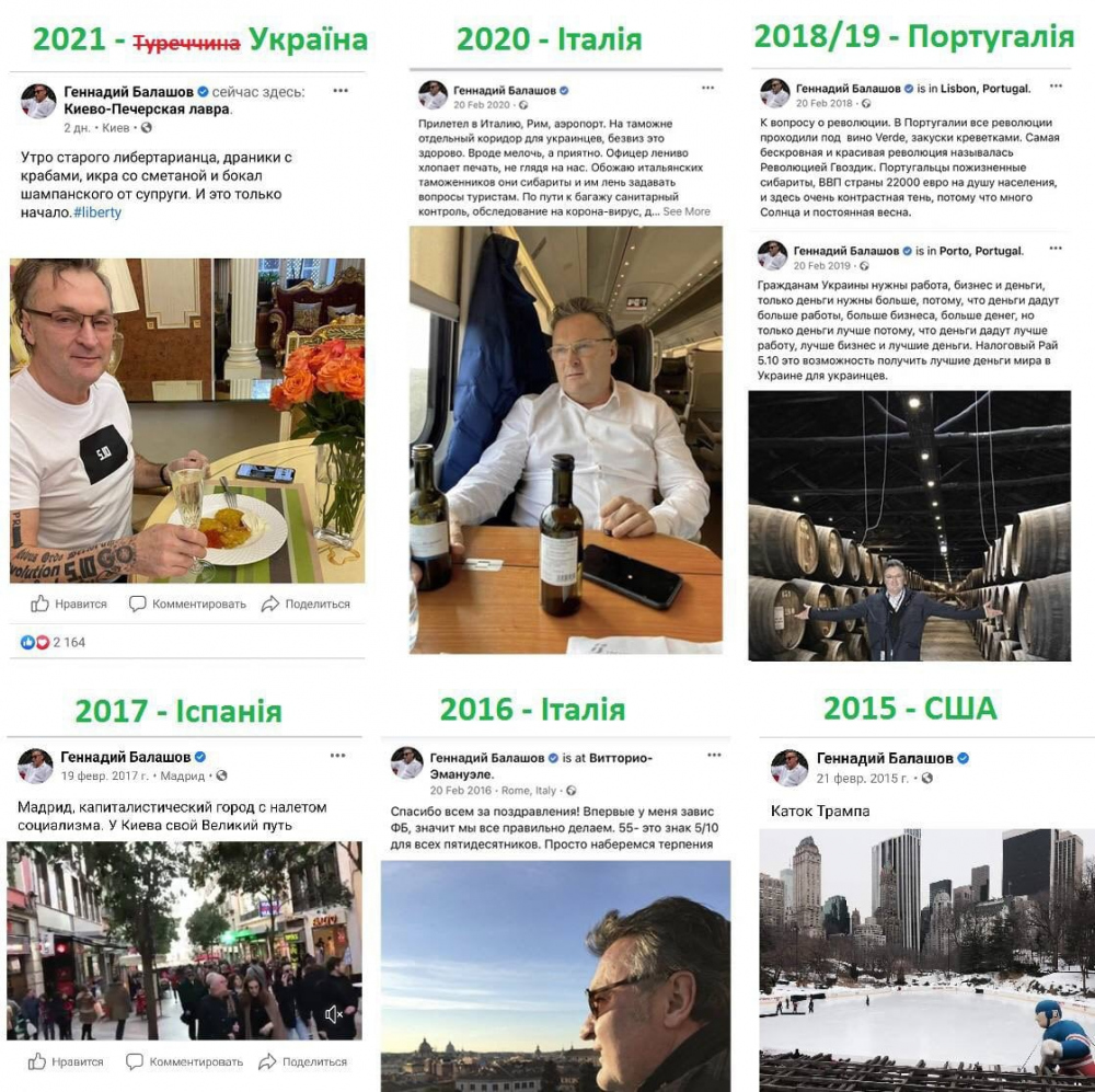 Лидер партии «5.10» Балашов пытался улететь в Стамбул, но ему запретили покидать УкраинуУкраинский бизнесмен, блогер, глава либертарианской партии «5.10» Геннадий Балашов собирался улететь в Турцию, но не смог из-за запрета покидать страну. Об этом в Фейсбук сообщил политолог Виктор Таран. Он пояснил, что запрет выезжать из Украины связан с тем, что Балашова обвиняют в невыплате алиментов. Такие выводы сделал эксперт, изучив материалы реестра исполнительных производств. «Против Балашова открыли исполнительное производство из-за неуплаты алиментов. А по закону такие лица не имеют право покидать территорию Украины, пока не выплатят долги. Таким образом, Балашов получил статус невыездного», — уточнил Таран. При этом, по словам Тарана, это не единственный скандал, в который влип лидер партии. Политолог говорит, что несколько недель назад бизнесмен избил мужчину. Политолог добавил, что 18 февраля Балашов хотел отметить 60-летие в Стамбуле. Но что-то пошло не так: предпринимателя задержали пограничники в аэропорту Борисполь. В результате политику не дали разрешения на вылет, в связи с чем ему пришлось праздновать именины дома. Кстати, это впервые за 7 лет, так как до этого в день рождения бизнесмен уезжал – например, в США, Испанию, Италию и Португалию. СМЕРТЬ РОССИЙСКИМ ОККУПАНТАМ! Заметили ошибку? Выделяйте слова с ошибкой и нажимайте control-enter |