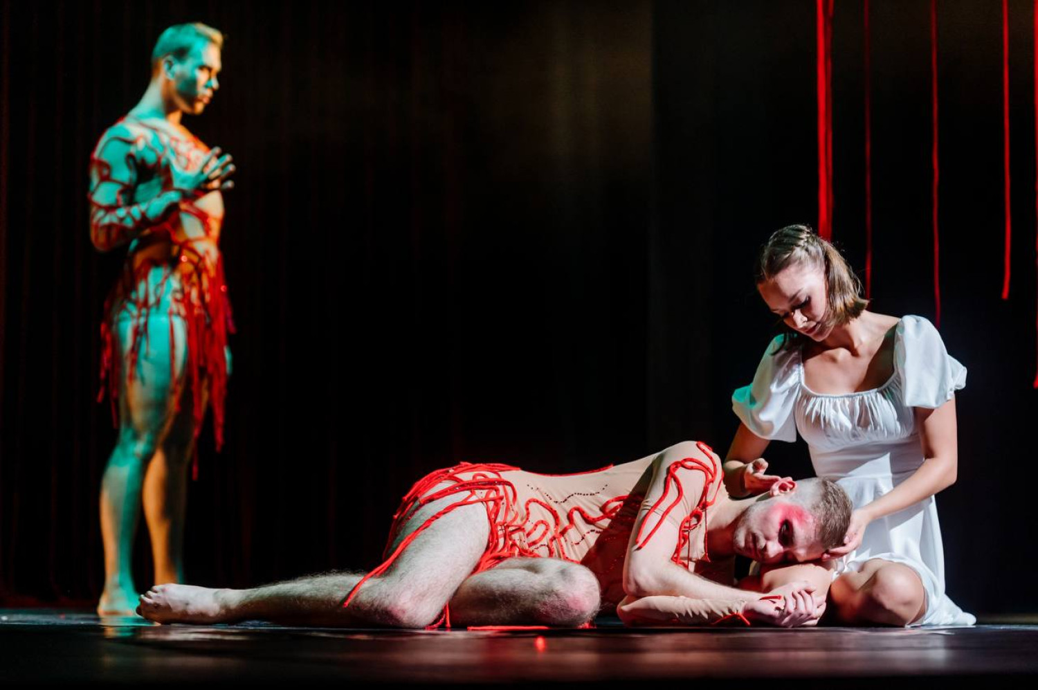 Лучше царствовать в аду, чем служить в раю: одесский балет «Сукня» раскрывает Сатану в каждом из насТанцевальный спектакль «Сукня», посвященный темам добра, зла и человеческого выбора, отметил свою первую годовщину на сцене Одесского театра музыкальной комедии. «Сукня» — проект одесских артистов и хореографов. За год балет не раз собирал аншлаги и срывал овации в нашем городе и на гастролях. А недавно автор музыки Денис Аксенов выпустил альбом с оригинальными саундтреками спектакля на популярных стриминговых платформах. Это первый подобный случай в истории украинского искусства. Спектакль «Сукня», который родился в Одессе под звуки воздушных тревог на третьем году полномасштабного вторжения, — яркий пример современного украинского искусства, которое языком балета размышляет о человеческих слабостях. Грех и добродетель, зло и добро — не просто противоположности, а вечные темы, с которыми человек сталкивается на протяжении веков. Мы постоянно возвращаемся к ним - в мыслях, в религии, в искусстве, — словно к зеркалу, в котором отражаются наши внутренние конфликты. И раз за разом убеждаемся, что грань между добродетелью и падением тонка, как белая полупрозрачная ткань платья. «Сукня» превращает эти вечные размышления в язык тел и музыки. Здесь нет поучительных уроков, нет окончательного суда. Только вереница образов, где каждый зритель найдет свое. Одна из самых ярких сюжетных линий спектакля — история падшего ангела. Здесь он приобретает новую трактовку: это не просто Сатана как воплощение зла, а персонаж, в котором зеркально отражаются внутренние противоречия каждого из нас. Как рассказал режиссер спектакля и исполнитель главной роли Денис Рудой, иногда Сатана проявляет большую искренность и чистоту — и выглядит более святым, чем обычные люди. Его падение — не просто злодеяние, а честный и болезненный выбор. «Лучше царствовать в аду, чем служить в раю», — говорил Люцифер в поэме Джона Мильтона «Потерянный рай». Перед ним и хореографом-постановщиком Виталием Кузнецовым стояла сложная задача: создать не просто танцевальное шоу, а раскрыть актерскую и эмоциональную индивидуальность каждого артиста, а не вывести на сцену безликую массовку. Как исполнитель, Рудой тоже столкнулся с серьезным вызовом. «В спектакле много танцев, а я — не танцор. Многие элементы оказались довольно сложными. Кроме того, на сцене я не только танцую, но и исполняю три песни — все разные и по-своему непростые. И вокальный, и хореографический материал почти на пределе моих возможностей», — вспоминает Денис Рудой. На сцене — слабости, знакомые каждому. Кто-то ищет утешение в бокале — и с каждым глотком все больше теряет самоконтроль. Кто-то пытается избавиться от внутренней пустоты и заполняет ее едой. Кто-то зарится на чужое богатство, но теряет остатки человечности и сострадания. А кто-то жаждет получить все и сразу, и получает но потом понимает, что все это — не то, не то, о чем мечталось. И кричать приходится уже не от счастья. Сатана все время рядом. Он не давит, не соблазняет. Он просто подливает, подносит, подсказывает. Он здесь не для того, чтобы принуждать, — он лишь дает то, чего человек и так жаждет. Так может быть Сатана — не зло, а зеркало? Отклик того, что давно зреет в глубине души. Ведь его участие похоже на заботу: он не запрещает, не отговари