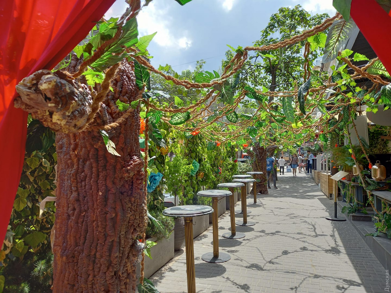 Бар «Боффо» на Екатерининской, 4 несколько дней назад решил радикально изменить дизайн своей летней площадки. Как сообщает корреспондент «Думской», веранду заведения и установленные рядом с ней на тротуаре столики опутали искусственной зеленью, на которой для еще большего эффекта повесили искусственные цветы кислотно-ярких оттенков. Таким образом, пешеходам сейчас приходится продираться через искусственные джунгли. Для полноты картины с двух сторон установили муляжи пней из монтажной пены. СМЕРТЬ РОСІЙСЬКИМ ОКУПАНТАМ! Помітили помилку? Виділяйте слова з помилкою та натискайте control-enter |
