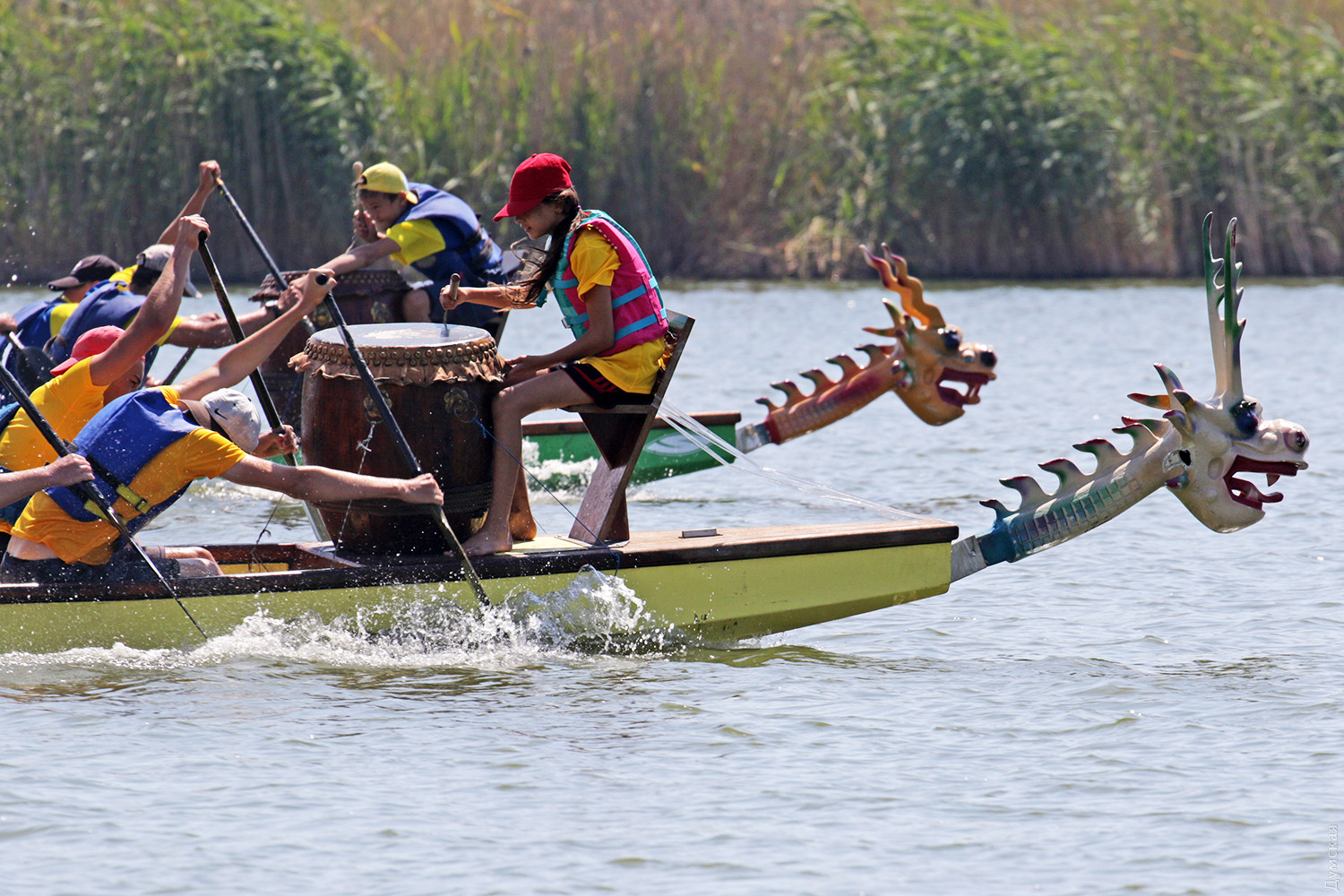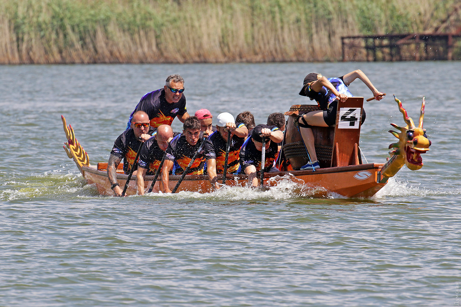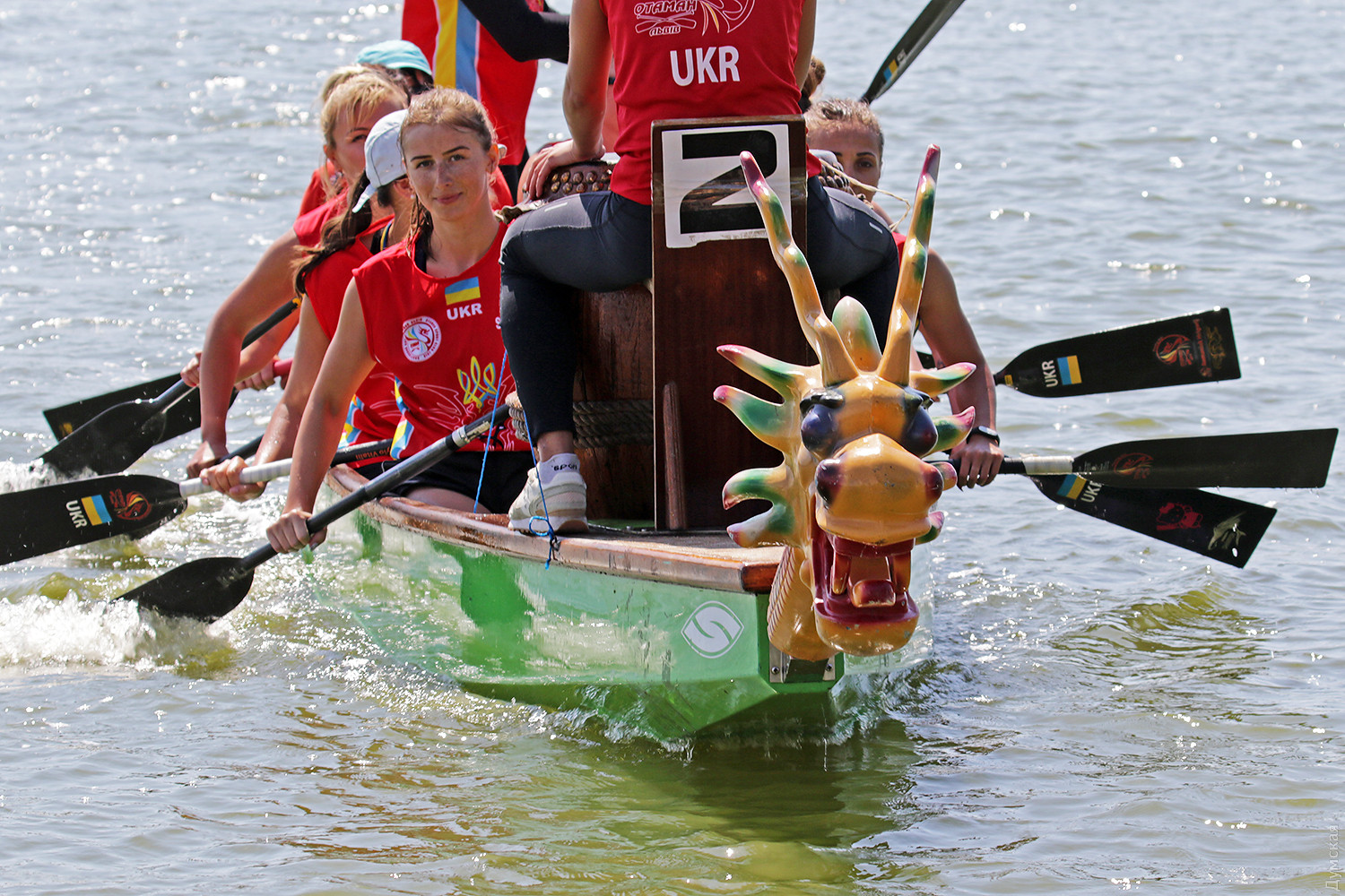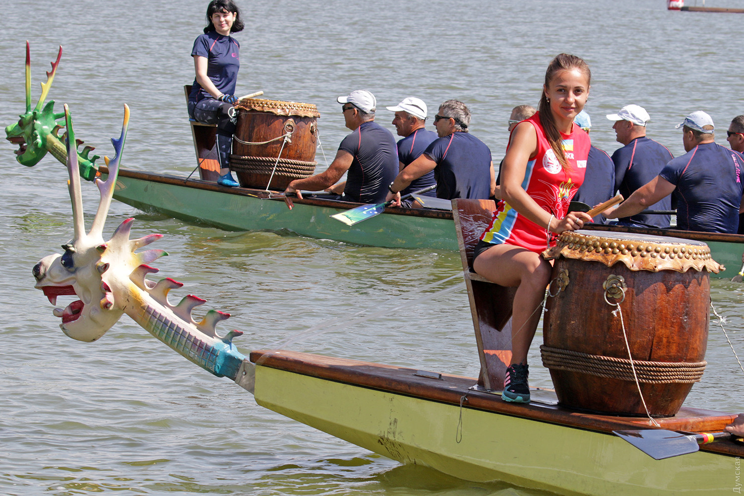 Резкий сигнал прерывает предстартовую тишину, и четверка больших лодок срывается с места. Под синхронными ударами весел небольшие суденышки стремительно набирают скорость. Пространство гребной базы наполняется свистом, гиканьем и отчаянными криками рулевых. Хрупкие девушки-барабанщицы, находящиеся в каждой из лодок, отбивают сумасшедший ритм, чтобы заставить гребцов работать на всю мощь. Кажется, что хищные морды драконов, подчеркивая накал борьбы, изрыгают языки пламени, а барабанная дробь и крики зрителей сливается в громкую какофонию. Примерно так выглядят состязания в сравнительно новом виде гребных единоборств — гонках на драгонботах. В субботу и воскресенье эти соревнования в рамках Кубка Черного моря прошли на базе спортклуба «Химик», что в городе Южном. Несмотря на сравнительную молодость, этот вид гребли стал очень популярным в Украине. Правила и традиции уходят в Поднебесную – именно в древнем Китае много веков назад зародились эти соревнования. Лодки имеют специальную конструкцию для посадки пяти пар гребцов, место для рулевого с большим веслом на корме и барабанщика с инструментом впереди. Нос судна обязательно должен быть увенчан внушительной хищной мордой дракона в традиционном китайском стиле. На этот раз за Кубок поборолись 16 команд из 11 городов Украины. Всего в гонках участвовало 298 спортсменов, самому младшему из которых — 12 лет, а самому старшему 65. Со своим драгонботом была даже команда из Тирасполя, которая, впрочем, не афишировала свое местоположение и гордо именовалась молдавской. Одесситы выставили две команды, а Киев целых три. Среди 16 команд, конечно, были свои фавориты. Несомненные шансы на успех имела одесская «Академия гребного спорта», львовская команда «Отаман» и очень сильные «Драконы» из городка Горишние плавни Полтавской области. Также отнюдь не в аутсайдерах значилась опытная команда «Сборная Украины 60+». Надо сказать, что украинцы имеют достаточно мощные традиции в этом виде спорта. Наша сборная и отдельные команды не раз привозили медали с чемпионатов мира и Европы. В подтверждение высокого класса украинских спортсменов стало решение о проведении в Киеве командного Кубка наций в будущем году. Соревнования в столице пройдут с 8 по 12 сентября 2019 года. Стоит отметить, что Одесский облсовет не остался равнодушным к этому виду спорта и даже оказывал нашим спортсменам помощь в поездке в китайский Куньмин на прошлогодний чемпионат мира. В одном из видов состязаний на драгонботах украинцы даже заняли весь пьедестал. В первых рядах были одесситы. Сетка соревнований на драгонботах достаточно сложна. Она предусматривает заезды мужских, женских и смешанных команд, а также юниоров до 19 лет. Дистанций тоже несколько, но сегодня разыгрывалась спринтерская – 200 метров и более длинная – километровая — 2 по 500 метров с поворотом в обратном направлении, всего 7 комплектов наград. Глава федерации Одесской области по гребле на драгонботах Карине Вартанян рассказала, что одесская команда «Академия гребного спорта» была хорошо подготовлена, но ей немного не повезло. «Перед решающим заездом на 1000 метров нам не улыбнулась фортуна. Мы уже вышли на старт, но один из гребцов обнаружил трещину в весле, которая привела бы к его поломке на дистанции. Поэтому нам пришлось вернуться, чтобы заменить весло. Э