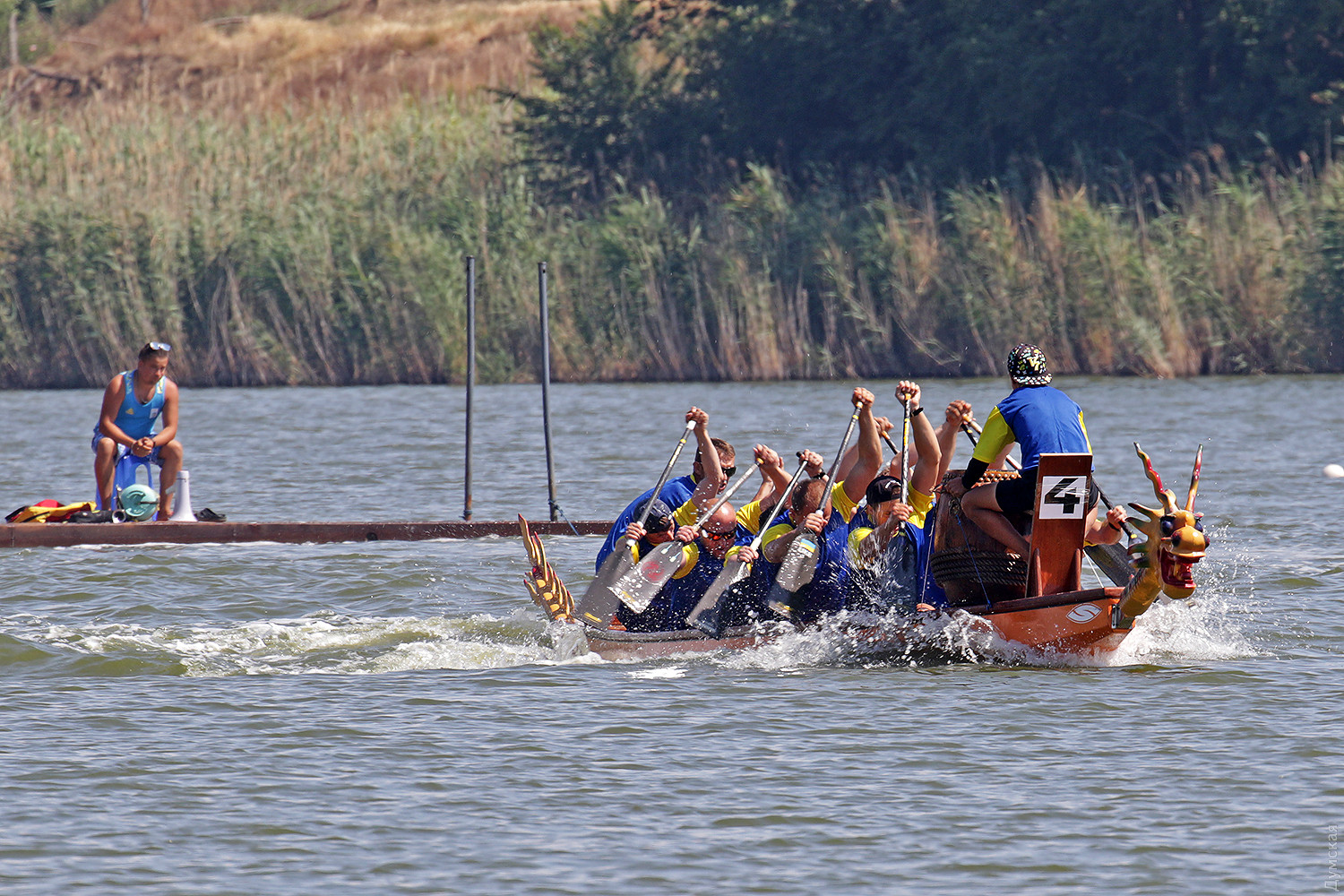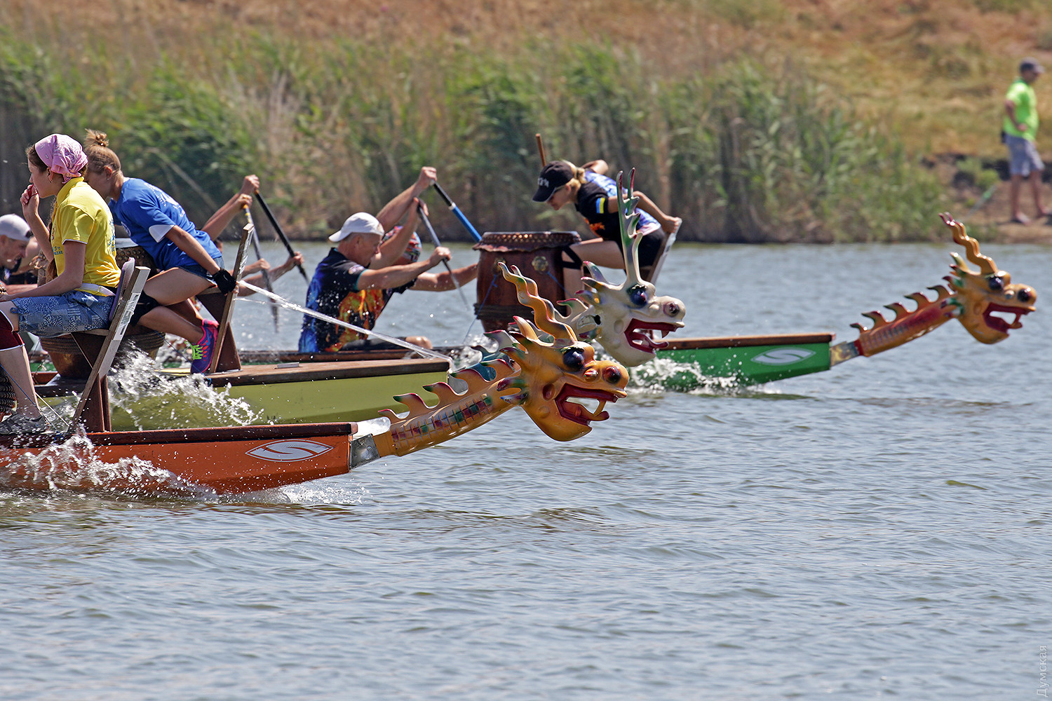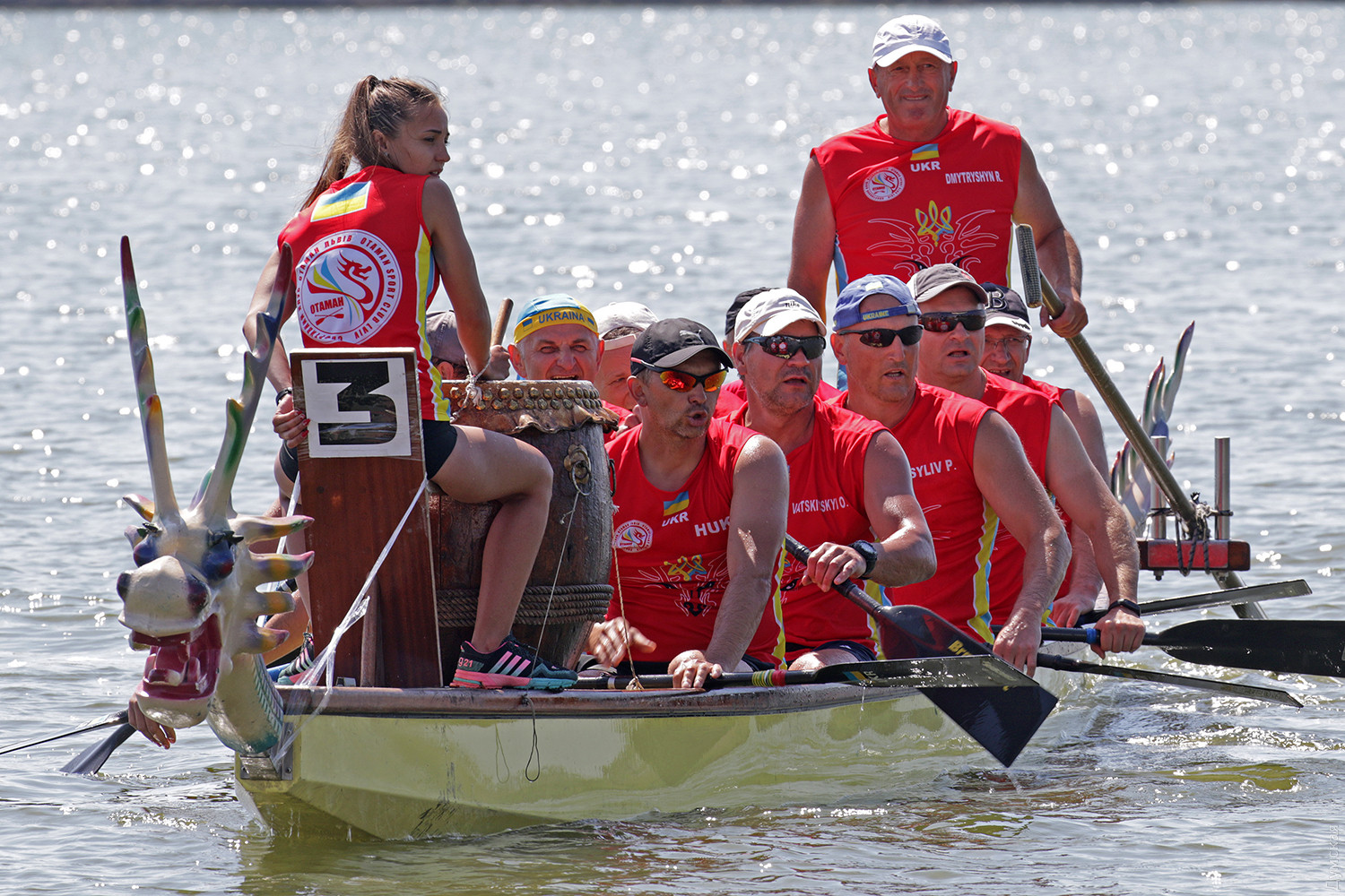 Резкий сигнал прерывает предстартовую тишину, и четверка больших лодок срывается с места. Под синхронными ударами весел небольшие суденышки стремительно набирают скорость. Пространство гребной базы наполняется свистом, гиканьем и отчаянными криками рулевых. Хрупкие девушки-барабанщицы, находящиеся в каждой из лодок, отбивают сумасшедший ритм, чтобы заставить гребцов работать на всю мощь. Кажется, что хищные морды драконов, подчеркивая накал борьбы, изрыгают языки пламени, а барабанная дробь и крики зрителей сливается в громкую какофонию. Примерно так выглядят состязания в сравнительно новом виде гребных единоборств — гонках на драгонботах. В субботу и воскресенье эти соревнования в рамках Кубка Черного моря прошли на базе спортклуба «Химик», что в городе Южном. Несмотря на сравнительную молодость, этот вид гребли стал очень популярным в Украине. Правила и традиции уходят в Поднебесную – именно в древнем Китае много веков назад зародились эти соревнования. Лодки имеют специальную конструкцию для посадки пяти пар гребцов, место для рулевого с большим веслом на корме и барабанщика с инструментом впереди. Нос судна обязательно должен быть увенчан внушительной хищной мордой дракона в традиционном китайском стиле. На этот раз за Кубок поборолись 16 команд из 11 городов Украины. Всего в гонках участвовало 298 спортсменов, самому младшему из которых — 12 лет, а самому старшему 65. Со своим драгонботом была даже команда из Тирасполя, которая, впрочем, не афишировала свое местоположение и гордо именовалась молдавской. Одесситы выставили две команды, а Киев целых три. Среди 16 команд, конечно, были свои фавориты. Несомненные шансы на успех имела одесская «Академия гребного спорта», львовская команда «Отаман» и очень сильные «Драконы» из городка Горишние плавни Полтавской области. Также отнюдь не в аутсайдерах значилась опытная команда «Сборная Украины 60+». Надо сказать, что украинцы имеют достаточно мощные традиции в этом виде спорта. Наша сборная и отдельные команды не раз привозили медали с чемпионатов мира и Европы. В подтверждение высокого класса украинских спортсменов стало решение о проведении в Киеве командного Кубка наций в будущем году. Соревнования в столице пройдут с 8 по 12 сентября 2019 года. Стоит отметить, что Одесский облсовет не остался равнодушным к этому виду спорта и даже оказывал нашим спортсменам помощь в поездке в китайский Куньмин на прошлогодний чемпионат мира. В одном из видов состязаний на драгонботах украинцы даже заняли весь пьедестал. В первых рядах были одесситы. Сетка соревнований на драгонботах достаточно сложна. Она предусматривает заезды мужских, женских и смешанных команд, а также юниоров до 19 лет. Дистанций тоже несколько, но сегодня разыгрывалась спринтерская – 200 метров и более длинная – километровая — 2 по 500 метров с поворотом в обратном направлении, всего 7 комплектов наград. Глава федерации Одесской области по гребле на драгонботах Карине Вартанян рассказала, что одесская команда «Академия гребного спорта» была хорошо подготовлена, но ей немного не повезло. «Перед решающим заездом на 1000 метров нам не улыбнулась фортуна. Мы уже вышли на старт, но один из гребцов обнаружил трещину в весле, которая привела бы к его поломке на дистанции. Поэтому нам пришлось вернуться, чтобы заменить весло. Э