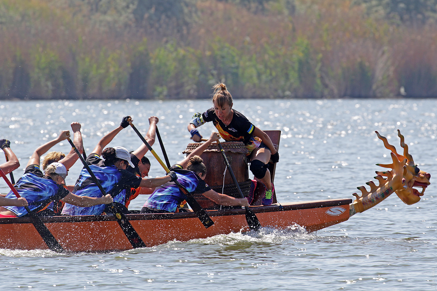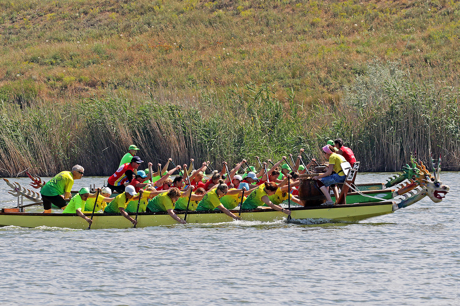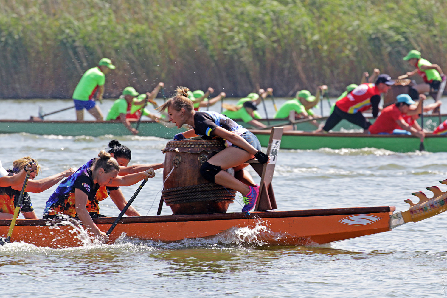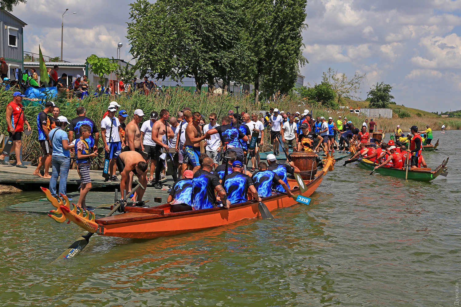Резкий сигнал прерывает предстартовую тишину, и четверка больших лодок срывается с места. Под синхронными ударами весел небольшие суденышки стремительно набирают скорость. Пространство гребной базы наполняется свистом, гиканьем и отчаянными криками рулевых. Хрупкие девушки-барабанщицы, находящиеся в каждой из лодок, отбивают сумасшедший ритм, чтобы заставить гребцов работать на всю мощь. Кажется, что хищные морды драконов, подчеркивая накал борьбы, изрыгают языки пламени, а барабанная дробь и крики зрителей сливается в громкую какофонию. Примерно так выглядят состязания в сравнительно новом виде гребных единоборств — гонках на драгонботах. В субботу и воскресенье эти соревнования в рамках Кубка Черного моря прошли на базе спортклуба «Химик», что в городе Южном. Несмотря на сравнительную молодость, этот вид гребли стал очень популярным в Украине. Правила и традиции уходят в Поднебесную – именно в древнем Китае много веков назад зародились эти соревнования. Лодки имеют специальную конструкцию для посадки пяти пар гребцов, место для рулевого с большим веслом на корме и барабанщика с инструментом впереди. Нос судна обязательно должен быть увенчан внушительной хищной мордой дракона в традиционном китайском стиле. На этот раз за Кубок поборолись 16 команд из 11 городов Украины. Всего в гонках участвовало 298 спортсменов, самому младшему из которых — 12 лет, а самому старшему 65. Со своим драгонботом была даже команда из Тирасполя, которая, впрочем, не афишировала свое местоположение и гордо именовалась молдавской. Одесситы выставили две команды, а Киев целых три. Среди 16 команд, конечно, были свои фавориты. Несомненные шансы на успех имела одесская «Академия гребного спорта», львовская команда «Отаман» и очень сильные «Драконы» из городка Горишние плавни Полтавской области. Также отнюдь не в аутсайдерах значилась опытная команда «Сборная Украины 60+». Надо сказать, что украинцы имеют достаточно мощные традиции в этом виде спорта. Наша сборная и отдельные команды не раз привозили медали с чемпионатов мира и Европы. В подтверждение высокого класса украинских спортсменов стало решение о проведении в Киеве командного Кубка наций в будущем году. Соревнования в столице пройдут с 8 по 12 сентября 2019 года. Стоит отметить, что Одесский облсовет не остался равнодушным к этому виду спорта и даже оказывал нашим спортсменам помощь в поездке в китайский Куньмин на прошлогодний чемпионат мира. В одном из видов состязаний на драгонботах украинцы даже заняли весь пьедестал. В первых рядах были одесситы. Сетка соревнований на драгонботах достаточно сложна. Она предусматривает заезды мужских, женских и смешанных команд, а также юниоров до 19 лет. Дистанций тоже несколько, но сегодня разыгрывалась спринтерская – 200 метров и более длинная – километровая — 2 по 500 метров с поворотом в обратном направлении, всего 7 комплектов наград. Глава федерации Одесской области по гребле на драгонботах Карине Вартанян рассказала, что одесская команда «Академия гребного спорта» была хорошо подготовлена, но ей немного не повезло. «Перед решающим заездом на 1000 метров нам не улыбнулась фортуна. Мы уже вышли на старт, но один из гребцов обнаружил трещину в весле, которая привела бы к его поломке на дистанции. Поэтому нам пришлось вернуться, чтобы заменить весло. Э