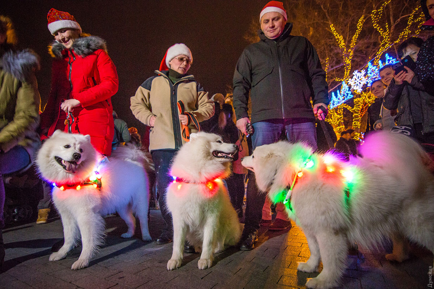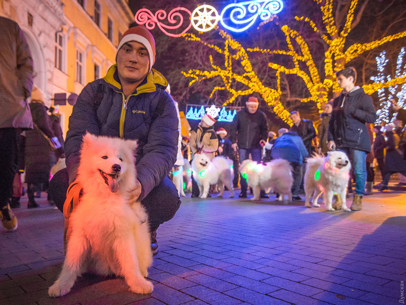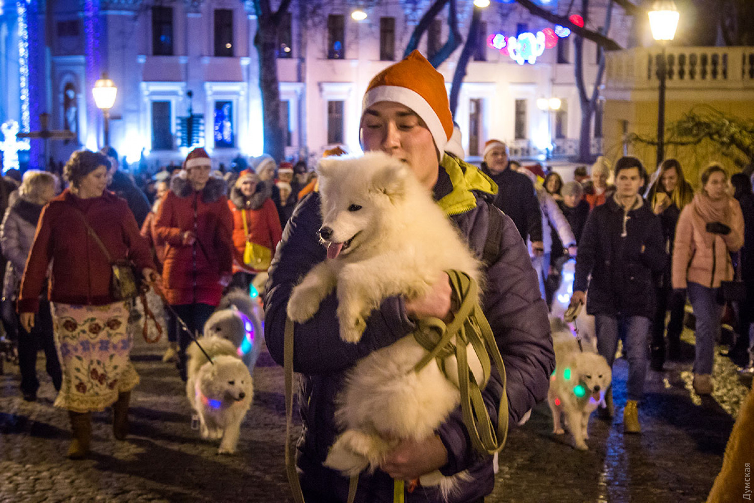Белые и смешные: в Одессе прошел новогодний парад самоедских собак
